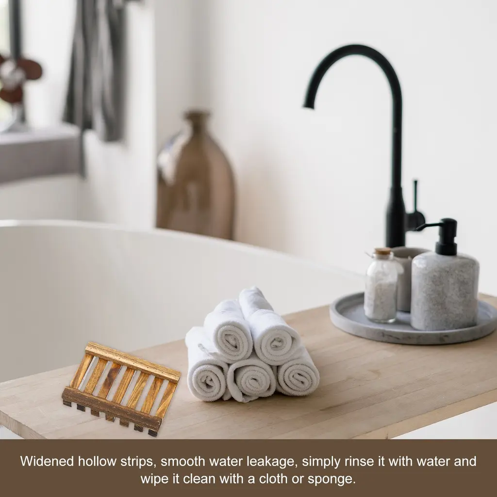 Good Material: Our soap tray is made from natural wood, the wood grain is beautiful, polished smooth, strong, and durable. The wood not only adds a touch of warmth and elegance to your bathroom decor but also provides excellent durability and resistance to moisture.Concave Design: Our soap tray features a concave gap that helps to keep your soap dry by allowing excess water to drain away. This design prevents soap from becoming damp and extends its lifespan, ensuring that holds your soap stably.Easy to Clean: Maintaining our soap tray is effortless. Widened hollow strips, smooth water leakage, simply rinse it with water and wipe it clean with a cloth or sponge. The smooth surface of the wood allows for easy removal of soap residue, making it clean and convenient to use.Scope of Application: Our soap tray can be used in various settings, such as bathrooms, kitchens, or even by the sink. It is not only suitable for holding soap but also works well as a good gift for family, and friends. Its versatile nature makes it a practical and stylish addition to any space.Specification:Material: Bamboo WoodSize: 11.5 x 8 x 2.2 cm / 4.53'' x 3.15'' x 0.87'' (L x W x H)Package Content: 1 x Soap Dish