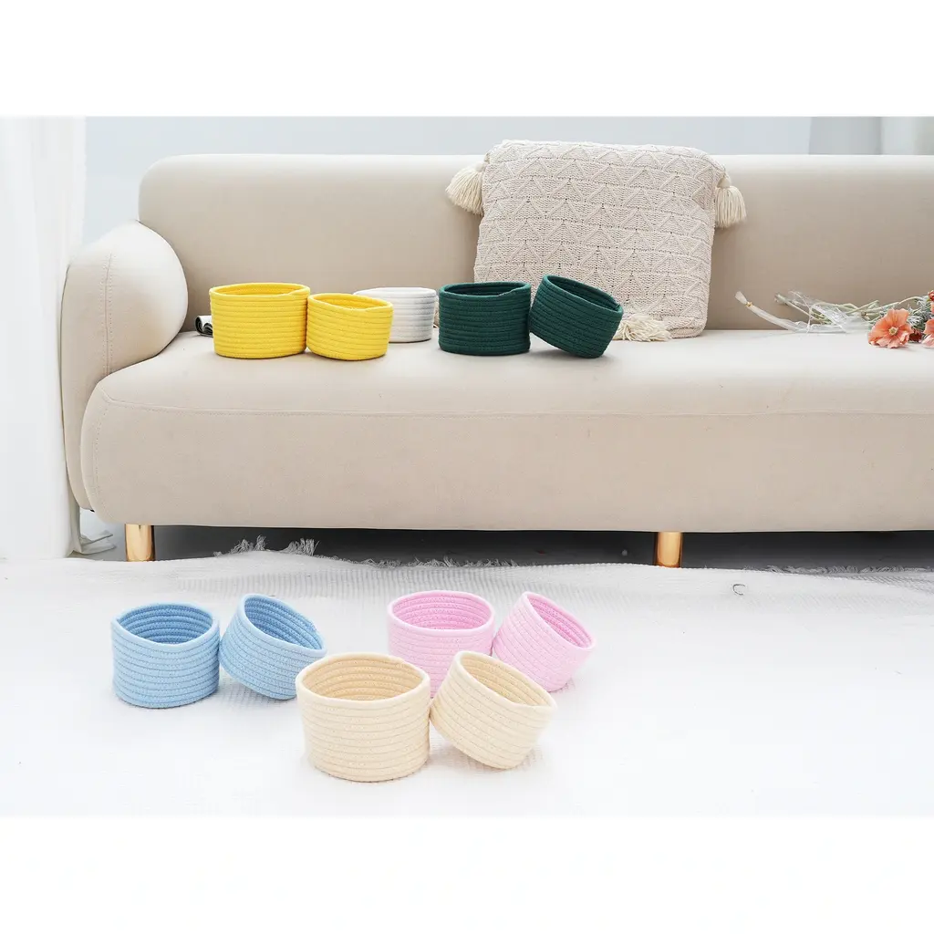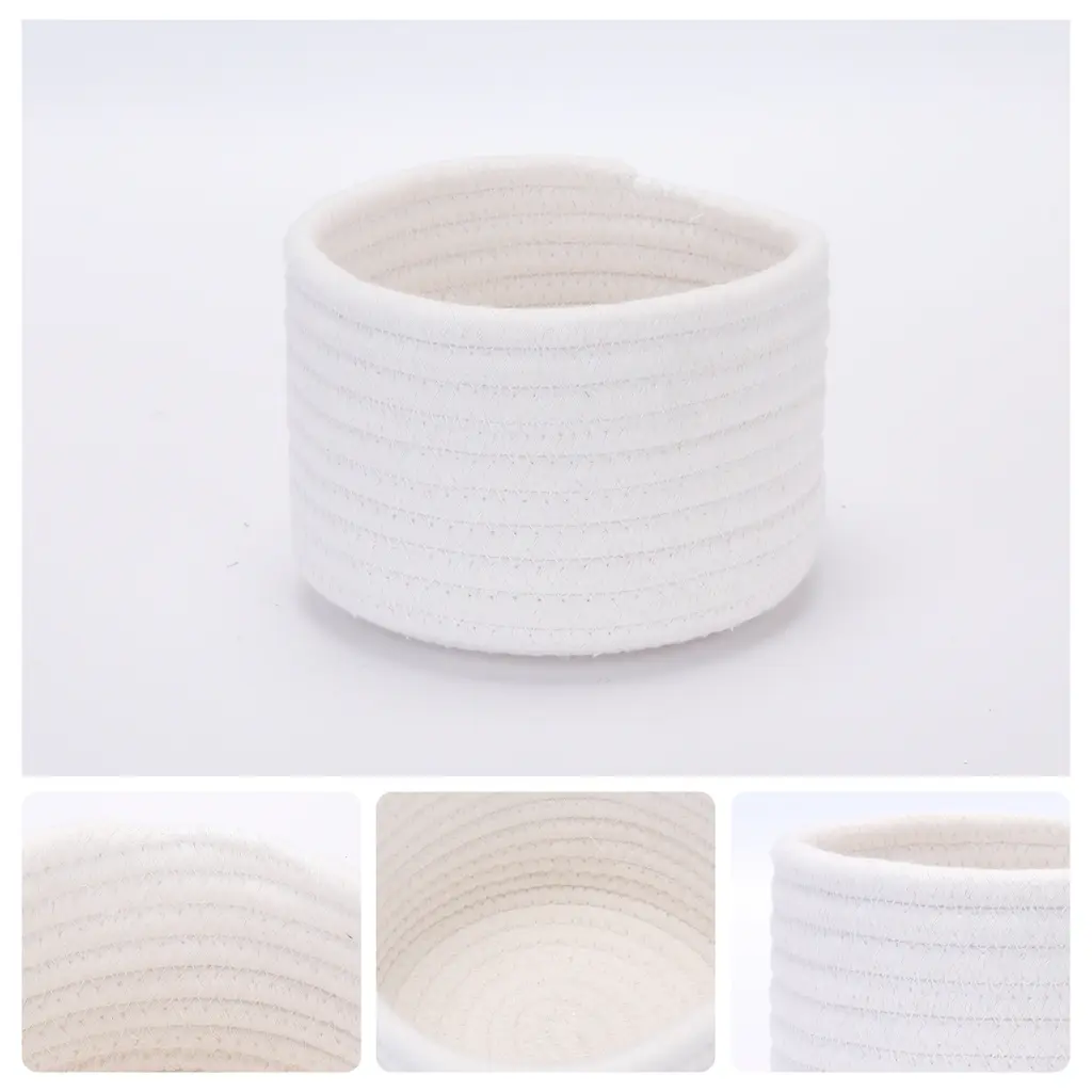 Premium Material: Our small storage basket is meticulously handcrafted from odorless cotton rope. They are designed with no sharp corners. The chic appearance make these baskets a fashionable and functional addition to any decorEasy Shaping: Upon receiving your rope basket, please remove it from the packaging and fill it with items such as clothes or dolls to help it regain its shape. For quicker shaping, consider using a steam ironCompact Size: Our rectangular closet small woven basket for organizing intimate clothing, books, towels, cosmetics, snacks, and other small items, and key bowl for entryway tableGreat Gift: This basket storage perfect size to fit everything and very aesthetic. Worked perfectly for making a get-well basket for a friend. Our woven storage basket is a ideal gift for Easter, Christmas, Thanksgiving, Mother's Day, Father's Day, Valentine's Day, or girl's birthdayMultiple Use: This organization basket is great for putting blankets, shoes, clothes, towels, decorative pillows, hats, scarves, magazines, headset wire, remote control, magnetic card, keys, note storage, vegetables, fruits, CD, flowers and more home supplies by the front door. Fits on a bedside table, closet shelf, bookshelf, desk, floor, etcOur basket for bathroom, and designed with jute string and portable handles on the base. Minimalistic combined with a rustic style makes the whole flower basket simple and elegant. Handles design, easy to move and take away, free awesome practical adorable jute storage bin for daily use.These cotton rope baskets are designed to fit perfectly on shelves, closets, and even under beds, making them an ideal solution for organizing your home or office.