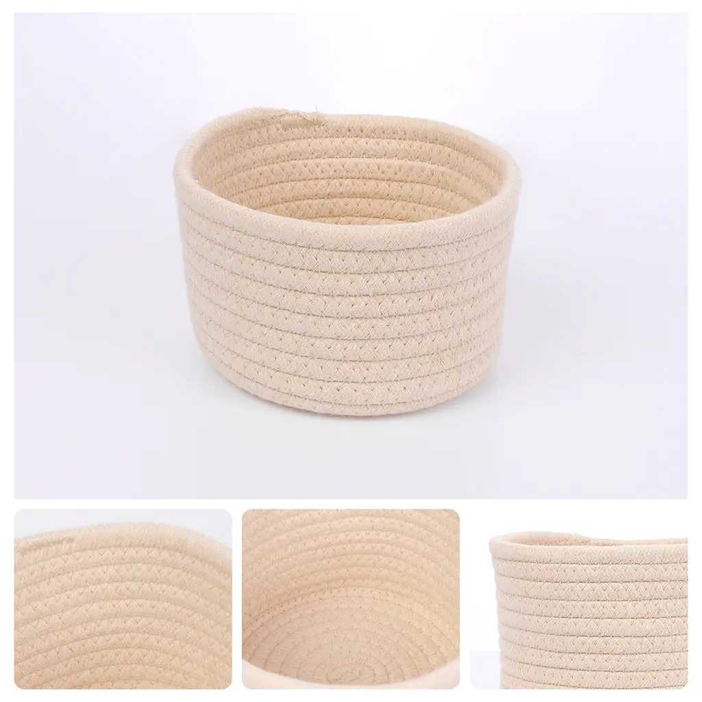Premium Material: Our small storage basket is meticulously handcrafted from odorless cotton rope. They are designed with no sharp corners. The chic appearance make these baskets a fashionable and functional addition to any decorEasy Shaping: Upon receiving your rope basket, please remove it from the packaging and fill it with items such as clothes or dolls to help it regain its shape. For quicker shaping, consider using a steam ironCompact Size: Our rectangular closet small woven basket for organizing intimate clothing, books, towels, cosmetics, snacks, and other small items, and key bowl for entryway tableGreat Gift: This basket storage perfect size to fit everything and very aesthetic. Worked perfectly for making a get-well basket for a friend. Our woven storage basket is a ideal gift for Easter, Christmas, Thanksgiving, Mother's Day, Father's Day, Valentine's Day, or girl's birthdayMultiple Use: This organization basket is great for putting blankets, shoes, clothes, towels, decorative pillows, hats, scarves, magazines, headset wire, remote control, magnetic card, keys, note storage, vegetables, fruits, CD, flowers and more home supplies by the front door. Fits on a bedside table, closet shelf, bookshelf, desk, floor, etcOur basket for bathroom, and designed with jute string and portable handles on the base. Minimalistic combined with a rustic style makes the whole flower basket simple and elegant. Handles design, easy to move and take away, free awesome practical adorable jute storage bin for daily use.These cotton rope baskets are designed to fit perfectly on shelves, closets, and even under beds, making them an ideal solution for organizing your home or office.