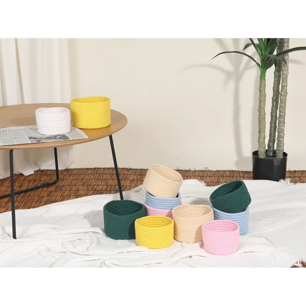 Premium Material: Our small storage basket is meticulously handcrafted from odorless cotton rope. They are designed with no sharp corners. The chic appearance make these baskets a fashionable and functional addition to any decorEasy Shaping: Upon receiving your rope basket, please remove it from the packaging and fill it with items such as clothes or dolls to help it regain its shape. For quicker shaping, consider using a steam ironCompact Size: Our rectangular closet small woven basket for organizing intimate clothing, books, towels, cosmetics, snacks, and other small items, and key bowl for entryway tableGreat Gift: This basket storage perfect size to fit everything and very aesthetic. Worked perfectly for making a get-well basket for a friend. Our woven storage basket is a ideal gift for Easter, Christmas, Thanksgiving, Mother's Day, Father's Day, Valentine's Day, or girl's birthdayMultiple Use: This organization basket is great for putting blankets, shoes, clothes, towels, decorative pillows, hats, scarves, magazines, headset wire, remote control, magnetic card, keys, note storage, vegetables, fruits, CD, flowers and more home supplies by the front door. Fits on a bedside table, closet shelf, bookshelf, desk, floor, etcOur basket for bathroom, and designed with jute string and portable handles on the base. Minimalistic combined with a rustic style makes the whole flower basket simple and elegant. Handles design, easy to move and take away, free awesome practical adorable jute storage bin for daily use.These cotton rope baskets are designed to fit perfectly on shelves, closets, and even under beds, making them an ideal solution for organizing your home or office.
