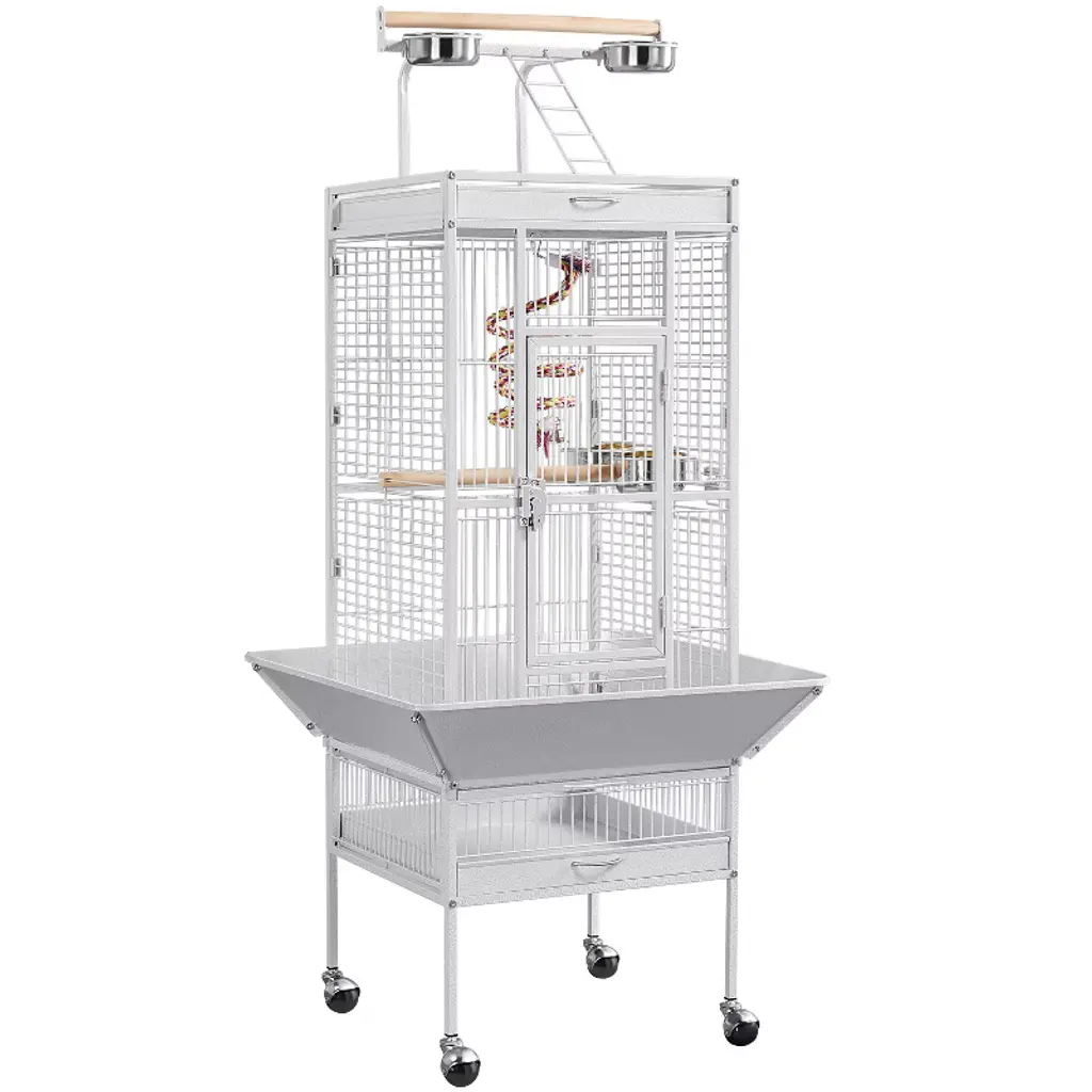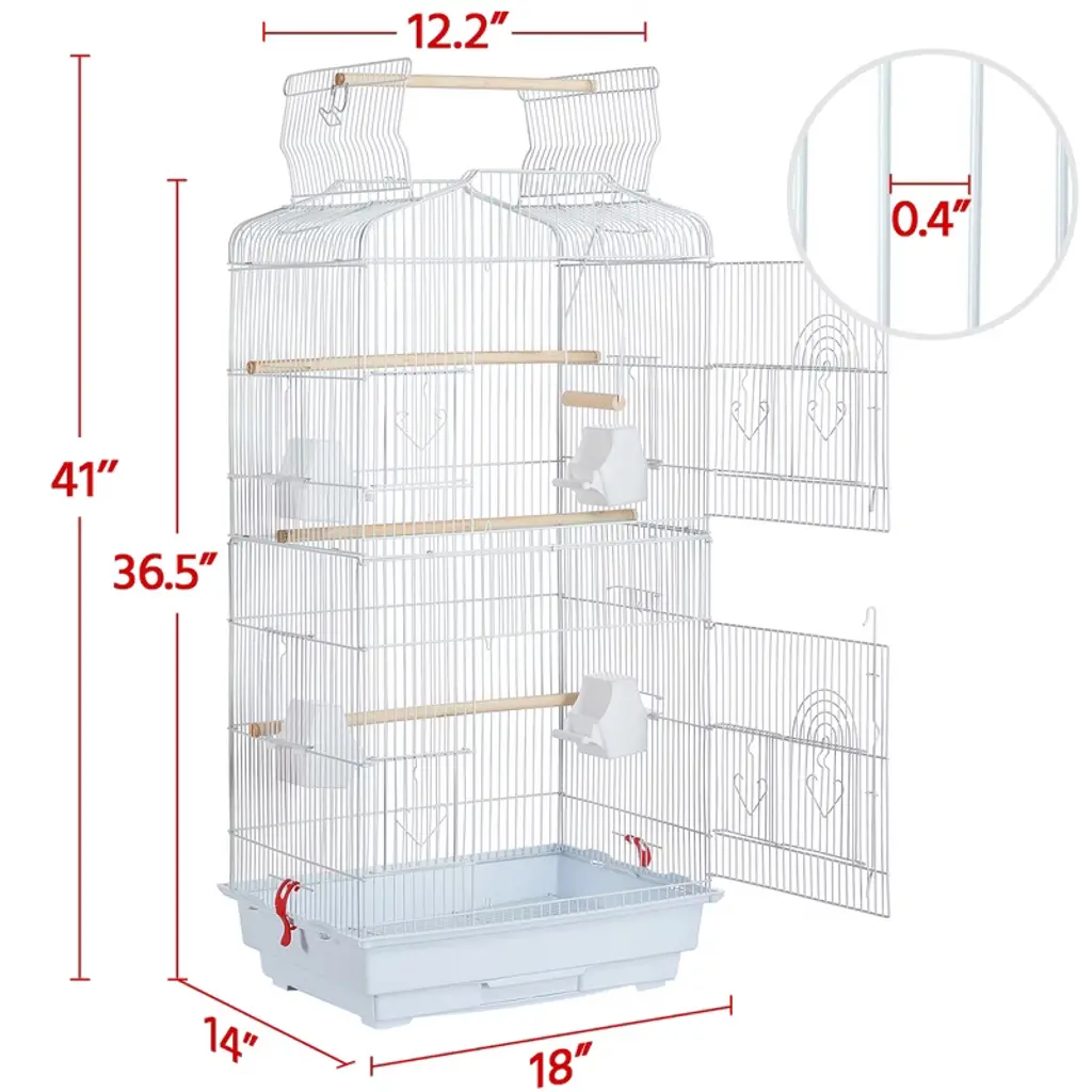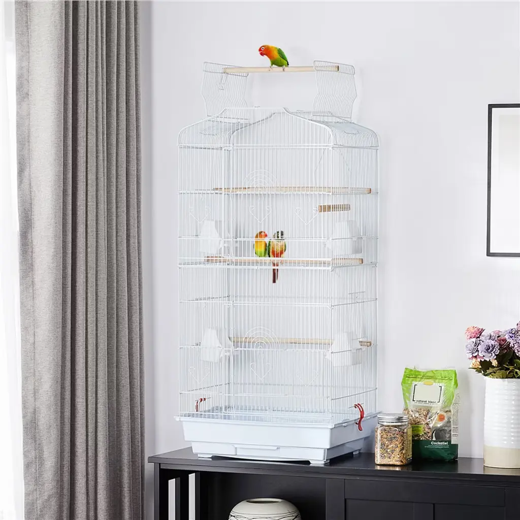 Yaheeetch Open Top Metal Birdcage Parrot Cage With Slide-out Tray And Feeders, White