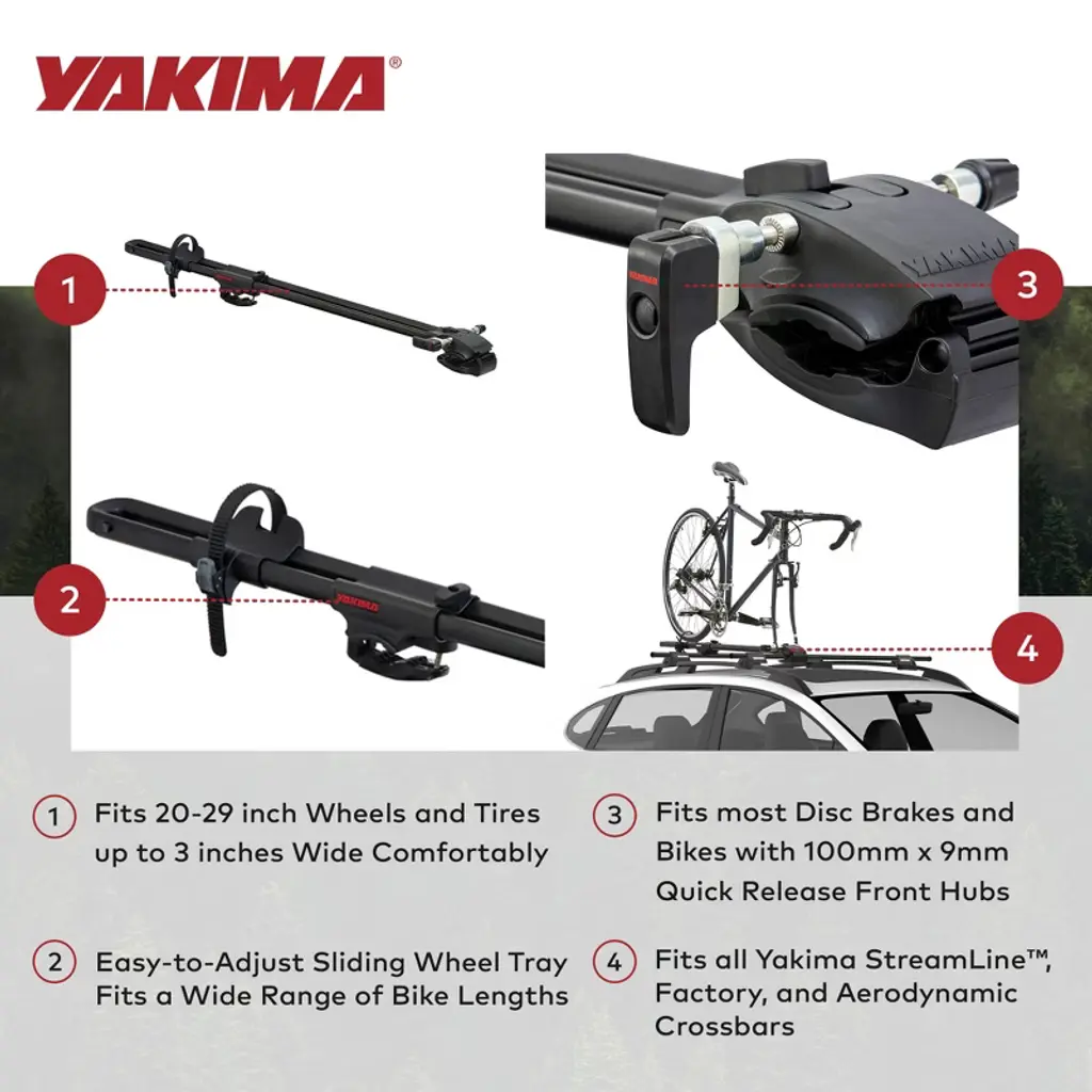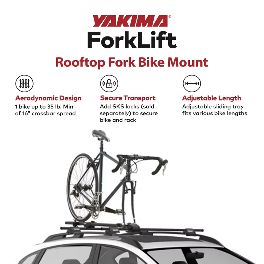 Yakima Forklift Rooftop Fork Style Bike Mount, Fits Streamline Crossbars, Easy To Adjust Sliding Wheel Tray, Fits Most Disc Brakes, Tool Free Install