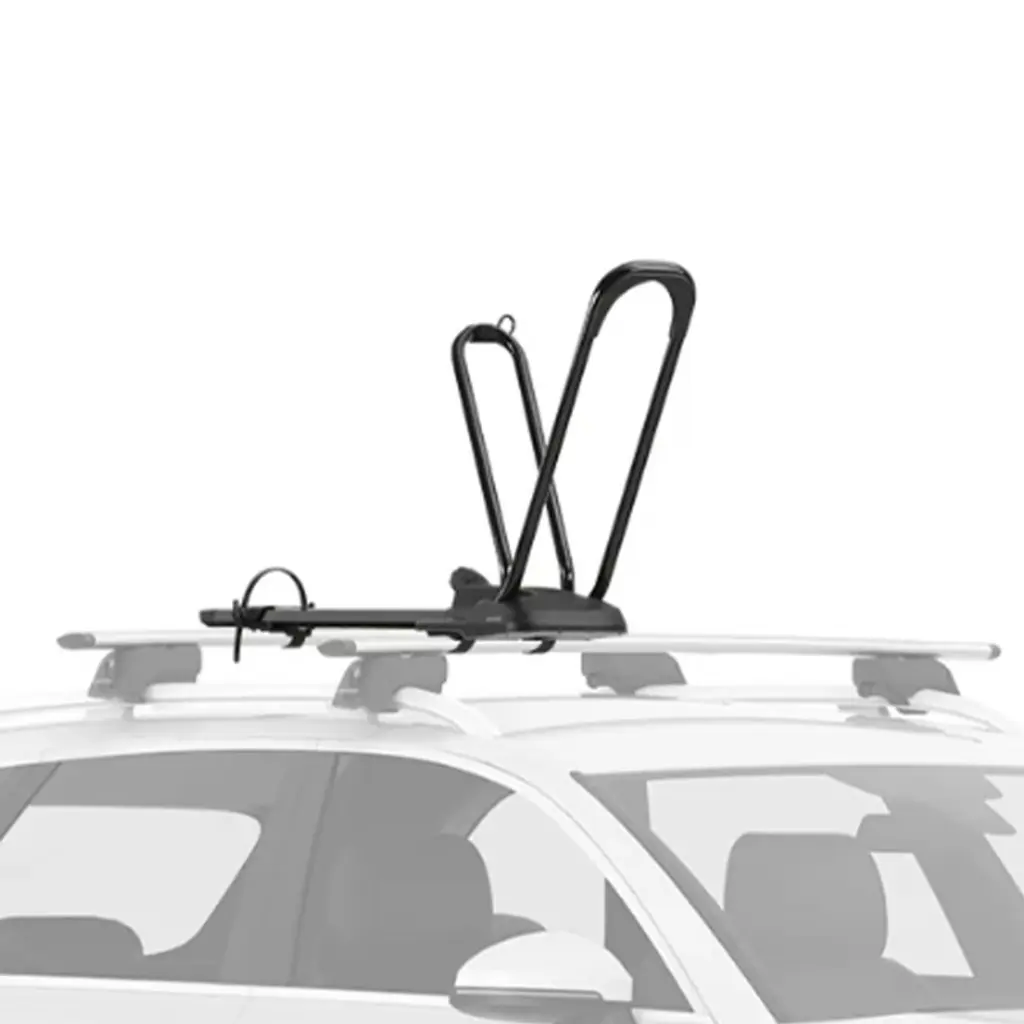 Meet the Yakima HighRoad Rooftop Upright Bike Mount, setting the standard for premium bike transportation. Crafted for cyclists who demand the best, this mount boasts various features to upgrade your biking experience. Central to its design is the integrated TorqueRight knob, offering swift and tool-free bike loading. Say goodbye to cumbersome adjustments as you can simply tighten the knob with precision to secure your bike effortlessly. Moreover, with no wheel removal or contact with the frame, this roof rack is ideal for safeguarding delicate carbon fiber bikes and custom paint jobs. The HighRoad's sleek, low-profile tray complements your vehicle's aesthetics and minimizes hatch interference, ensuring a seamless journey every time. Thanks to the universal mounting hardware, compatibility with most roof racks is guaranteed, providing unmatched versatility without compromise as this bike travel option requires a crossbar that is between 18 and 40 inches in spread. Plus, the integrated lock loop lets you add your bike lock for extra security during stops. Tested rigorously on roads and off-road terrain, the HighRoad is built to endure the most demanding challenges and is rated for up to 45 pounds per bike. Whether navigating city streets or tackling rugged trails, trust the Yakima HighRoad to transport your motorcycle with unparalleled ease, security, and style. Experience the future of bike transportation and experience the HighRoad difference.