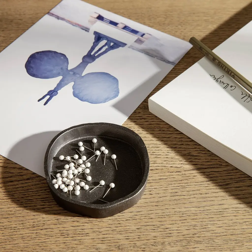 Named after the Japanese word for mountain, the Yama Tray - Oval is a sculptural yet functional piece that is inspired by wild, untamed landscape. Made from recycled casted aluminum and featuring a rough, matte and blackened finish that contrasts its fluid and organic shape, the decorative tray is ideal for storing stationery in your home office or as a catch-all for everyday essentials in the hallway. Can hold the Yama Tray – Round and Yama Cup and fits two bottles from the Care & Cleaning collection. Named after the Japanese word for mountain, the Yama Tray - Round is a sculptural yet functional piece that is inspired by wild, untamed landscape. Made from recycled casted aluminum and featuring a rough, matte and blackened finish that contrasts its fluid and organic shape, this decorative little tray is ideal for storing everyday essentials like stationery and jewellery. Fits neatly inside the Yama Tray – Oval and fits one bottle from the Care & Cleaning collection.