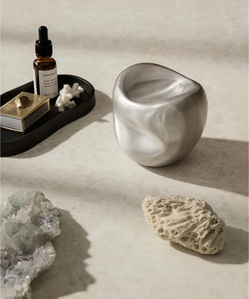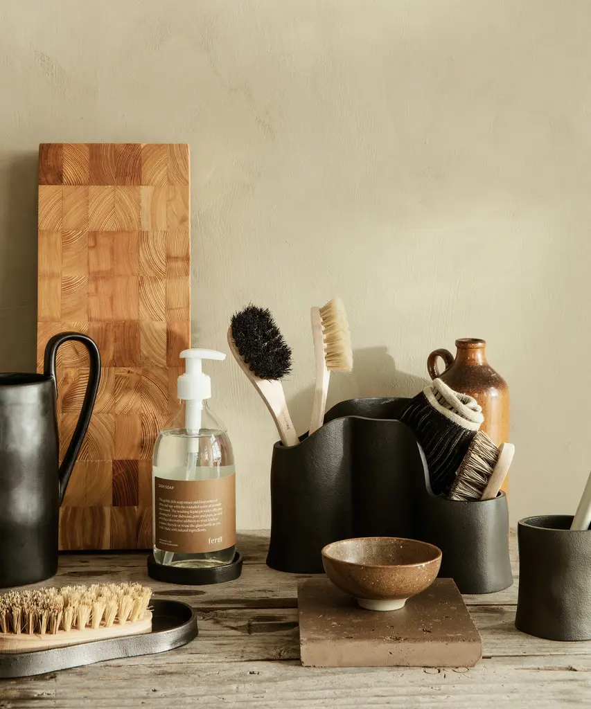 Named after the Japanese word for mountain, the Yama Tray - Oval is a sculptural yet functional piece that is inspired by a wild, untamed landscape. Made from recycled casted aluminum and featuring a rough, matte and blackened finish that contrasts its fluid and organic shape, the decorative tray is ideal for storing stationery in your home office or as a catch-all for everyday essentials in the hallway. Can hold the Yama Tray Round and Yama Cup and fits two bottles from the Care & Cleaning collection. Designed and produced by the Copenhagen-based studio Ferm Living.