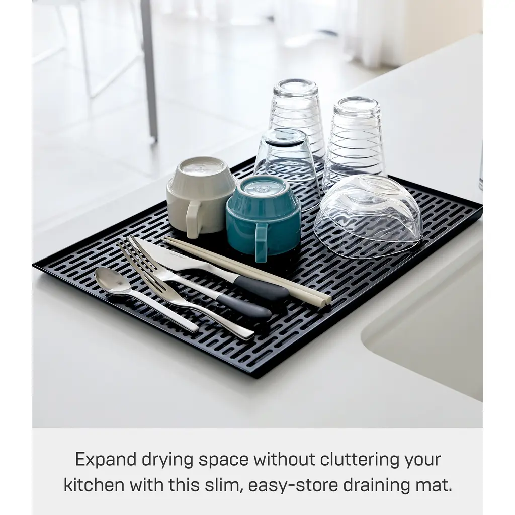 Yamazaki Home Dish Drainer Tray, Abs Plastic - L 12.09 X W 16.73 X H 0.59 Inches - Black