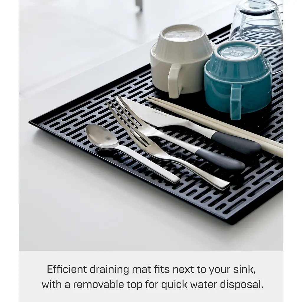 Wet countertops no more!Looking for a little extra drying space that won’t crowd your kitchen? Break out this draining mat and set it alongside your sink when it comes time to add some extra drying room for dishes and utensils. When finished, simply remove the top lid and pour excess water back into the sink for easy cleaning. Thanks to its slim design, you can easily tuck this draining mat behind your sink or in a cupboard when not in use.