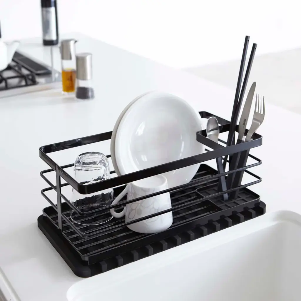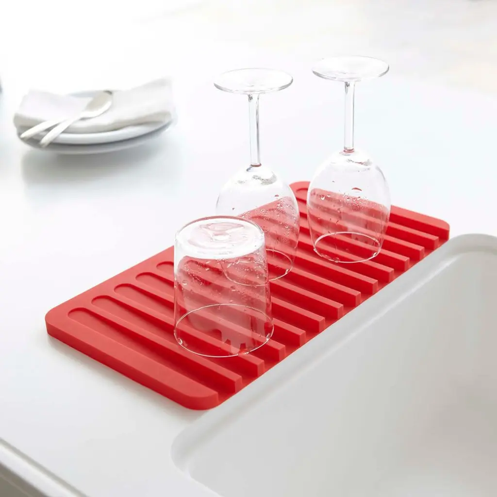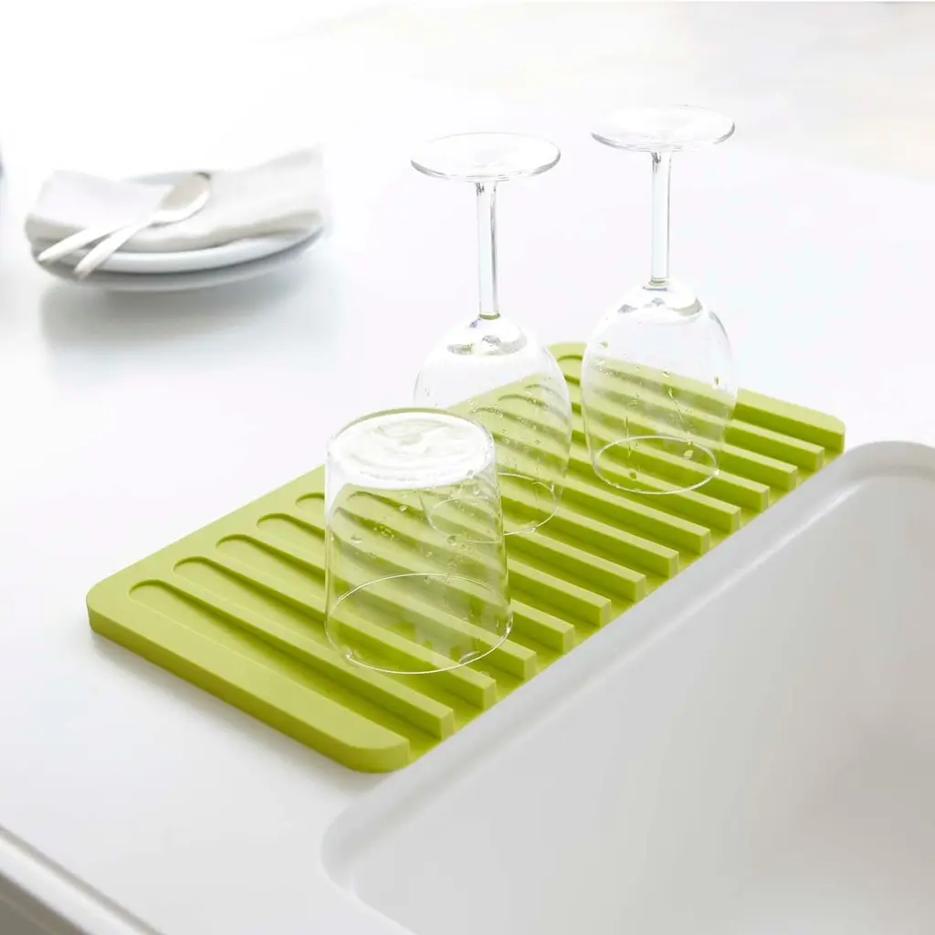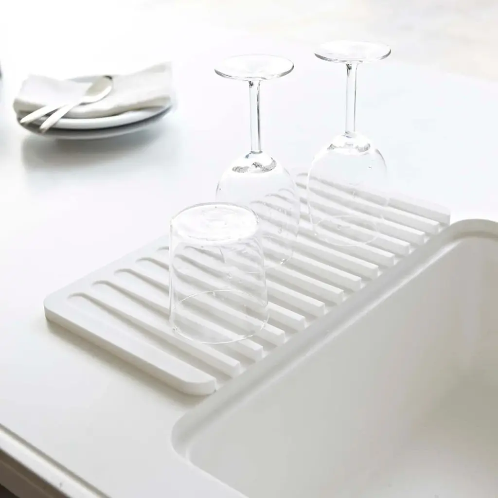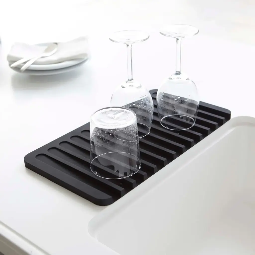 Keep your dishes dry and your countertop clean with the Yamazaki Home Flow Drainer Tray. The sleek and minimalist design, made of high-quality silicone and designed in Japan, allows water to flow directly into the sink, ensuring your dishes are thoroughly dry. Use it on its own or pair it with a dish rack for added convenience.Features:Specifications: