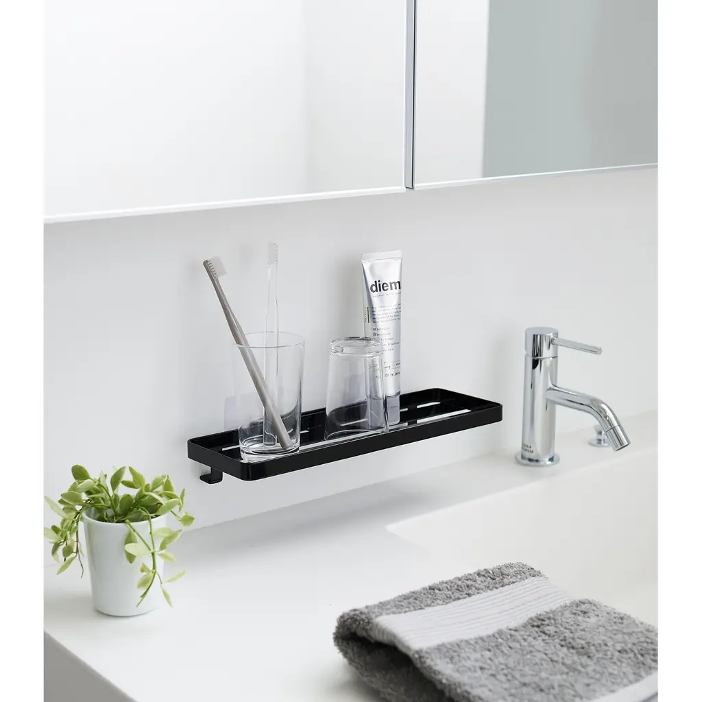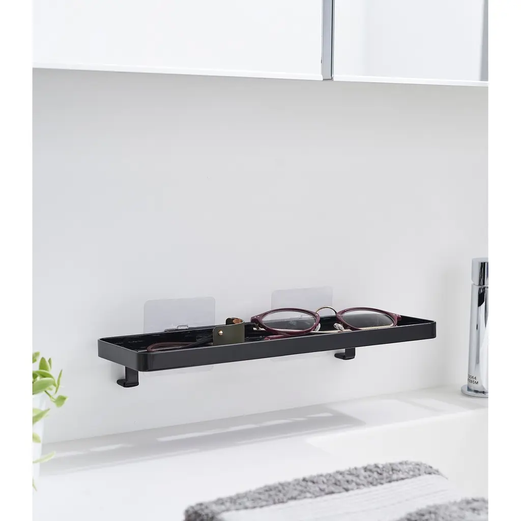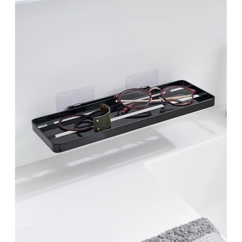 Yamazaki Home Traceless Adhesive Floating Tray, Steel, Holds 4.4 Lbs - L 4.53 X W 11.81 X H 1.85 Inches - Black