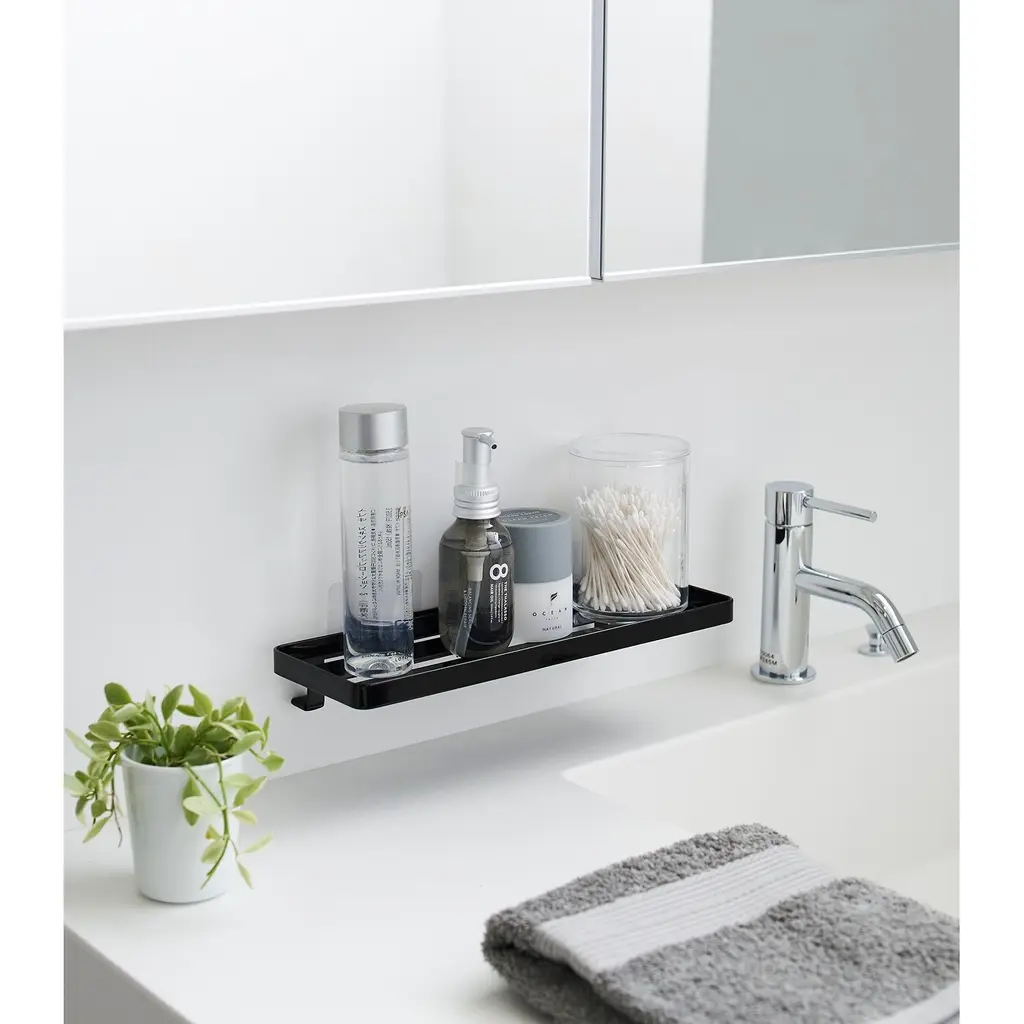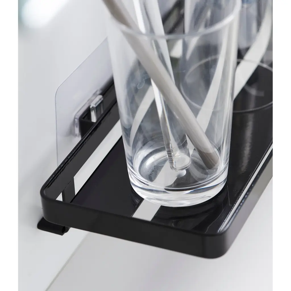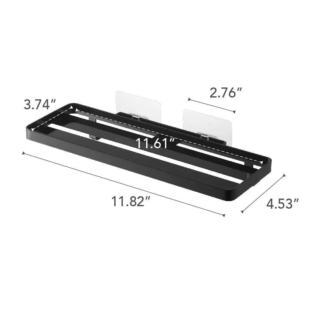 Yamazaki Home Traceless Adhesive Floating Tray, Steel, Holds 4.4 Lbs - L 4.53 X W 11.81 X H 1.85 Inches - Black