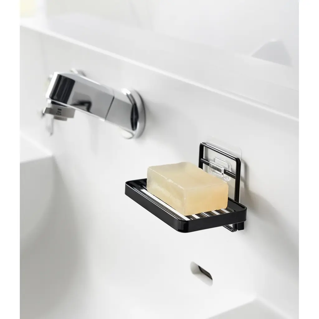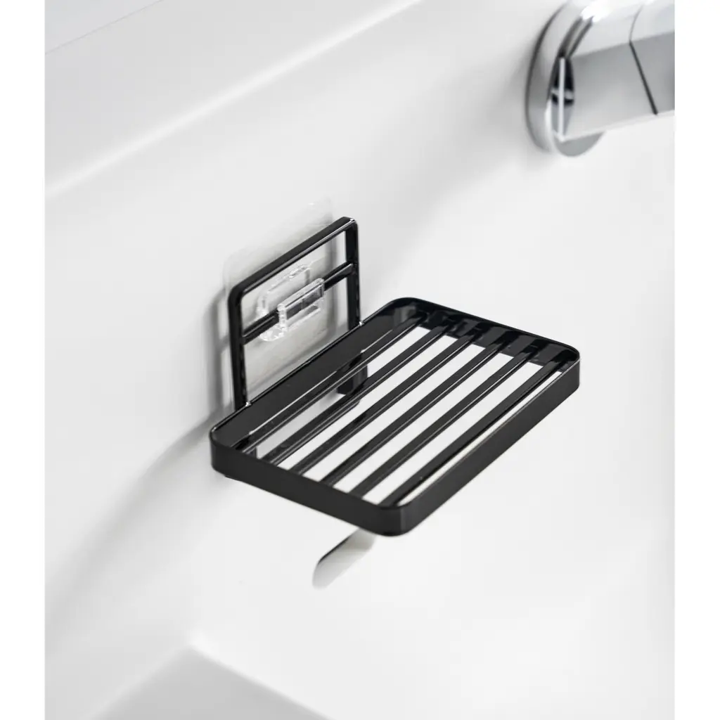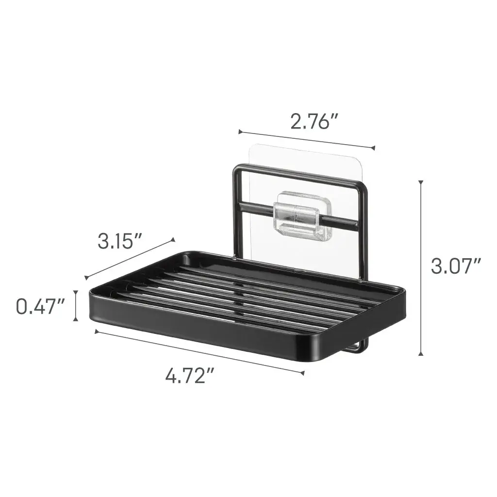 Yamazaki Home Traceless Adhesive Soap Tray, Steel, Holds 1.1 Lbs - L 3.35 X W 4.72 X H 3.07 Inches - Black