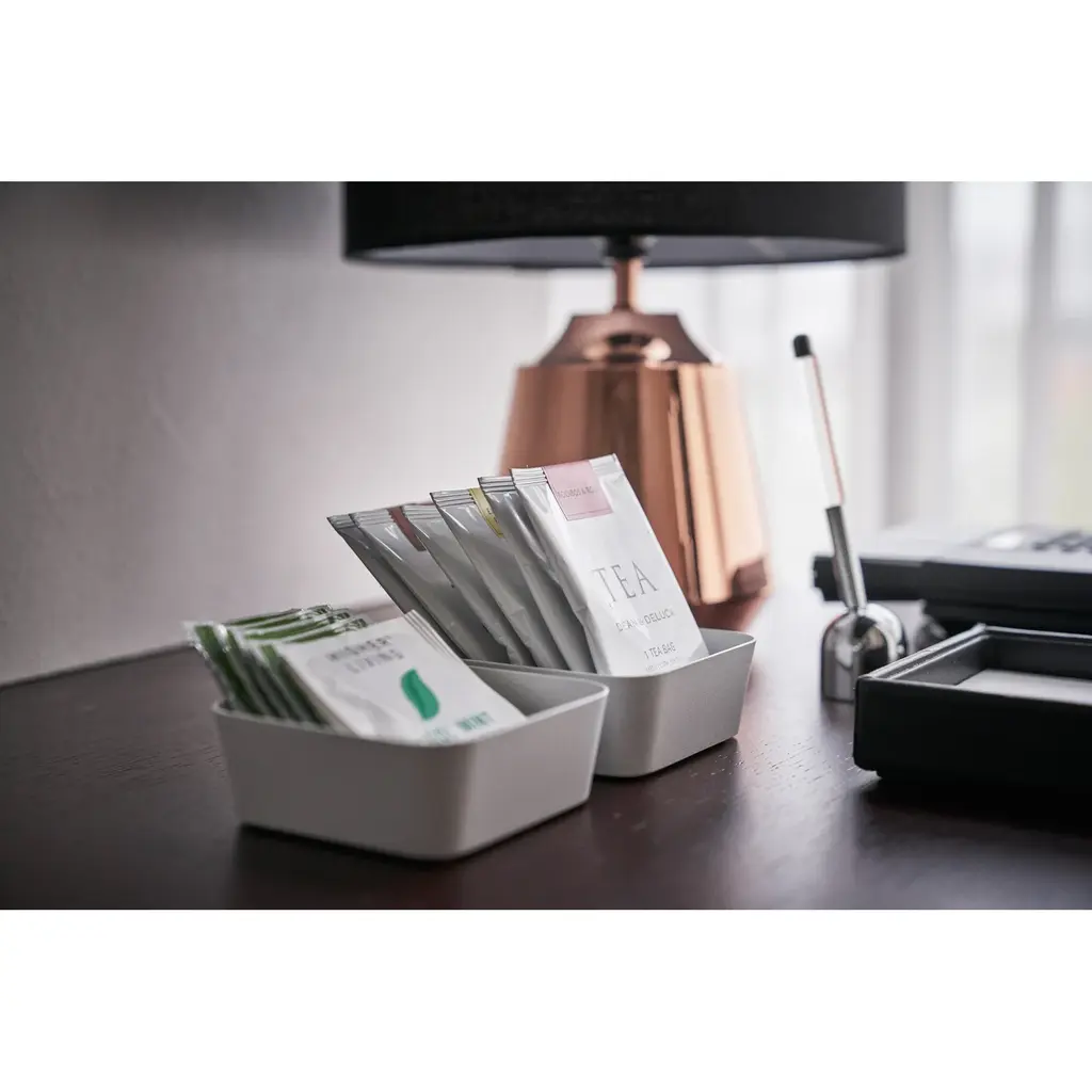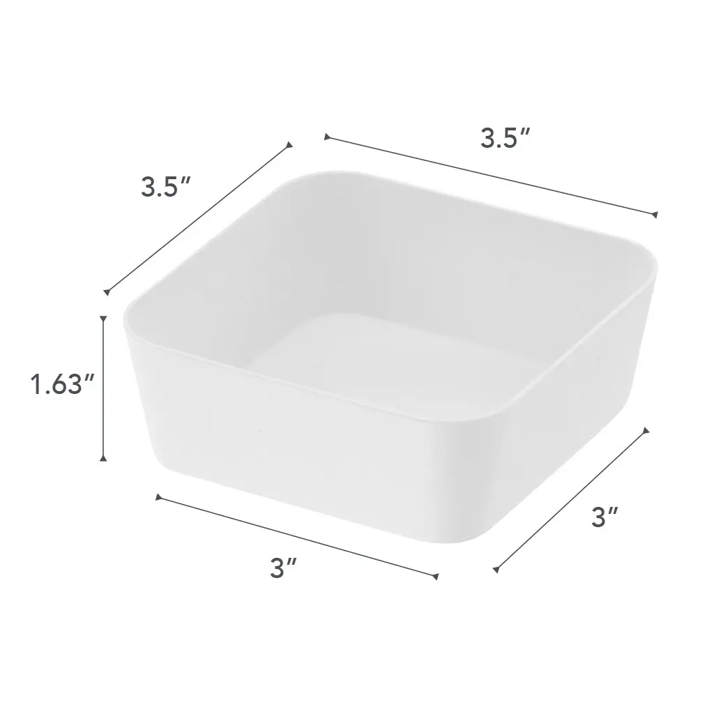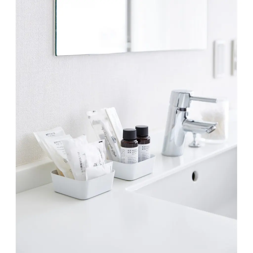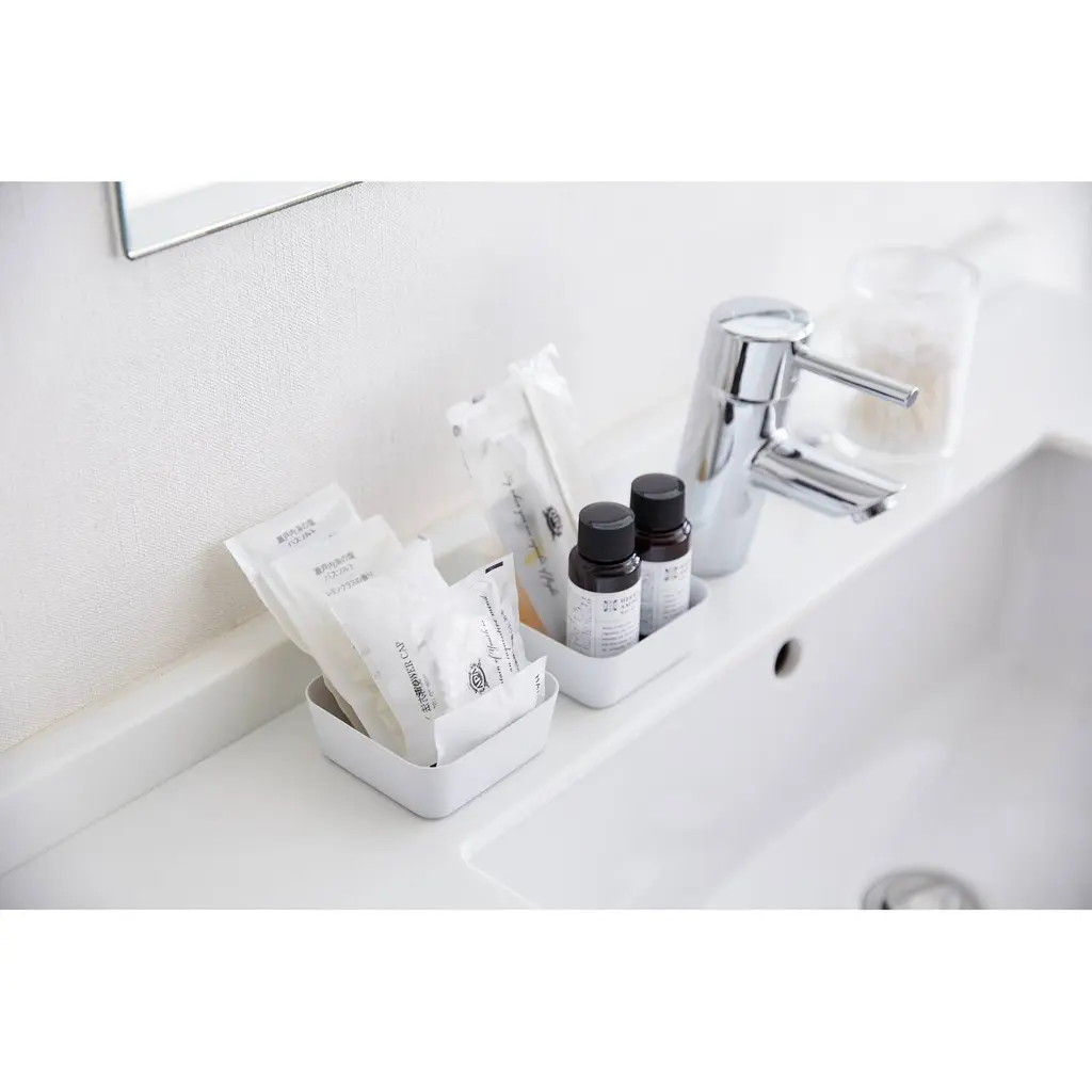 Yamazaki Home Vanity Tray - Flat - Two Sizes, Steel, 3.5" X 3.5" - L 3.54 X W 3.54 X H 1.57 Inches - White