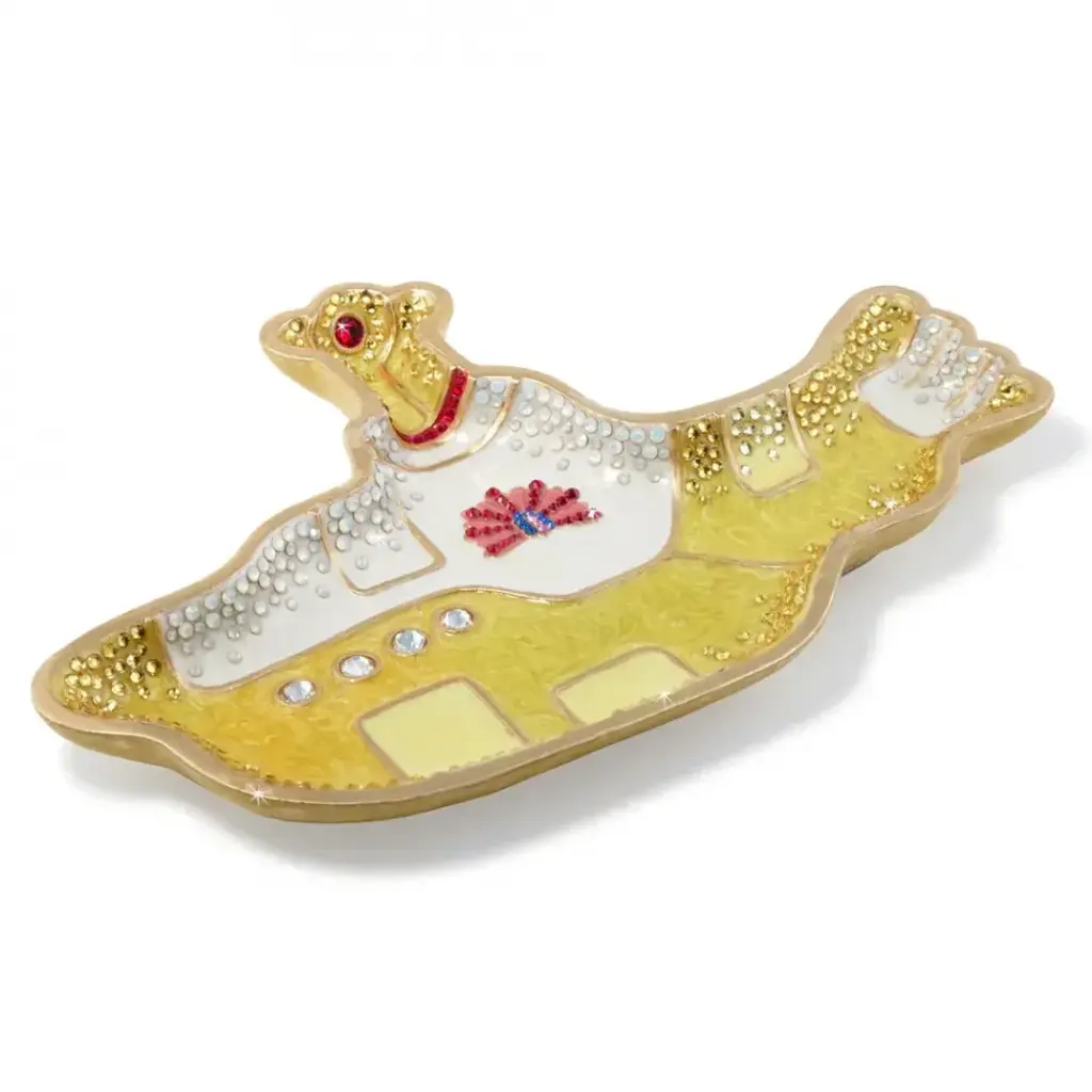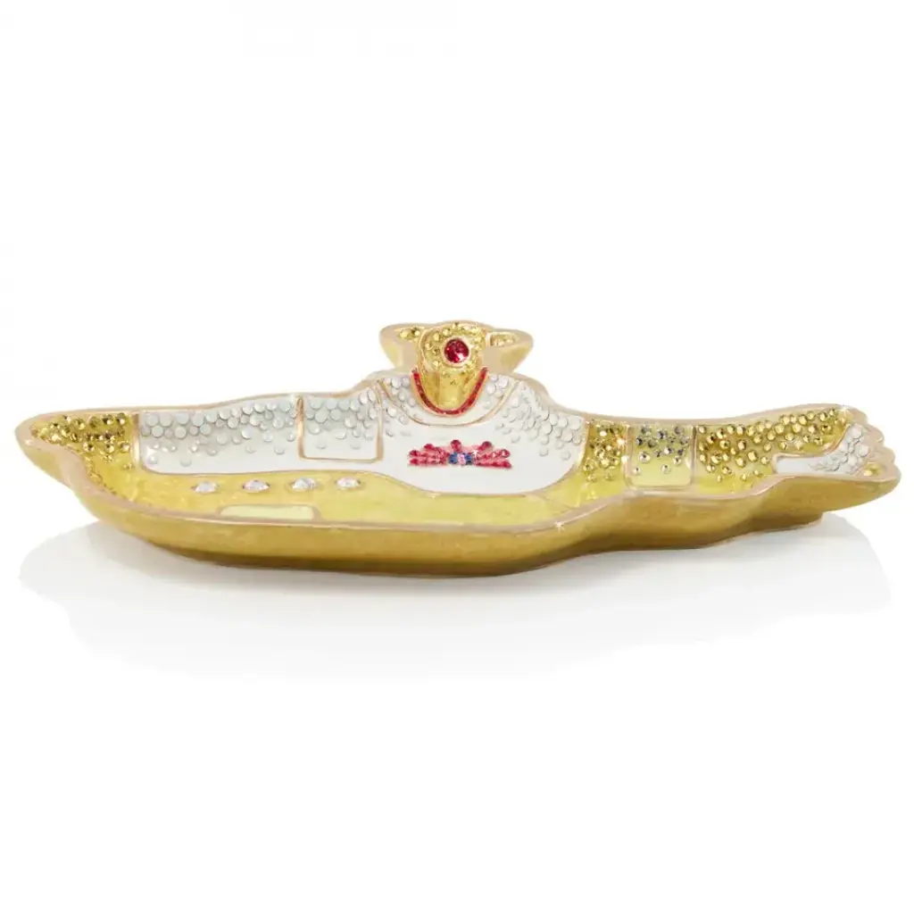 Experience a whimsical voyage with the Yellow Submarine Tray. This exquisite piece of artistry captures the spirit of The Beatles' animated classic, adorned with intricate hand-painted details and sparkling European crystals. Add a touch of retro charm to your decor and relive the magic of the Yellow Submarine with this beautifully handcrafted tray.
