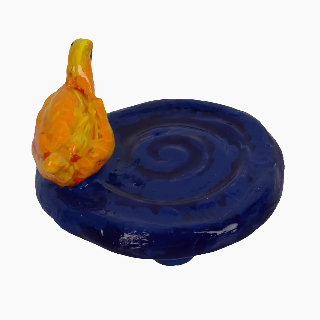 Yellow swan on blue geometric form soap tray has shiny touch. The tray is ceramic ,handmade. The tray is designed by ece & serra ceramics x kith&kin lifestyle collection. The soap tray is delicate. The tray adds joy to your bathroom