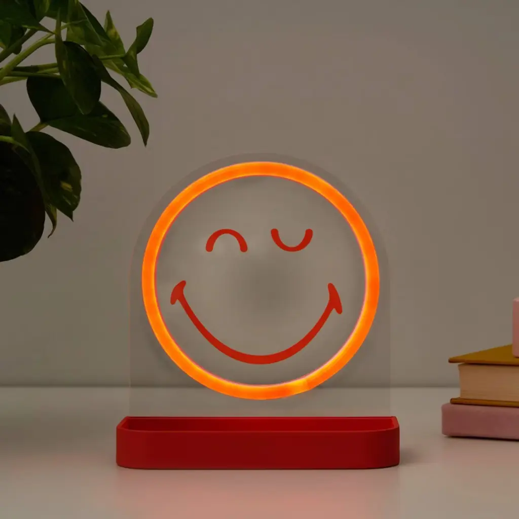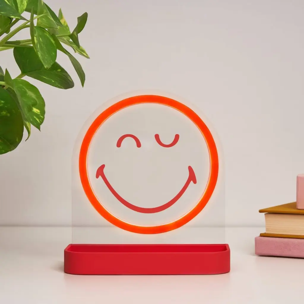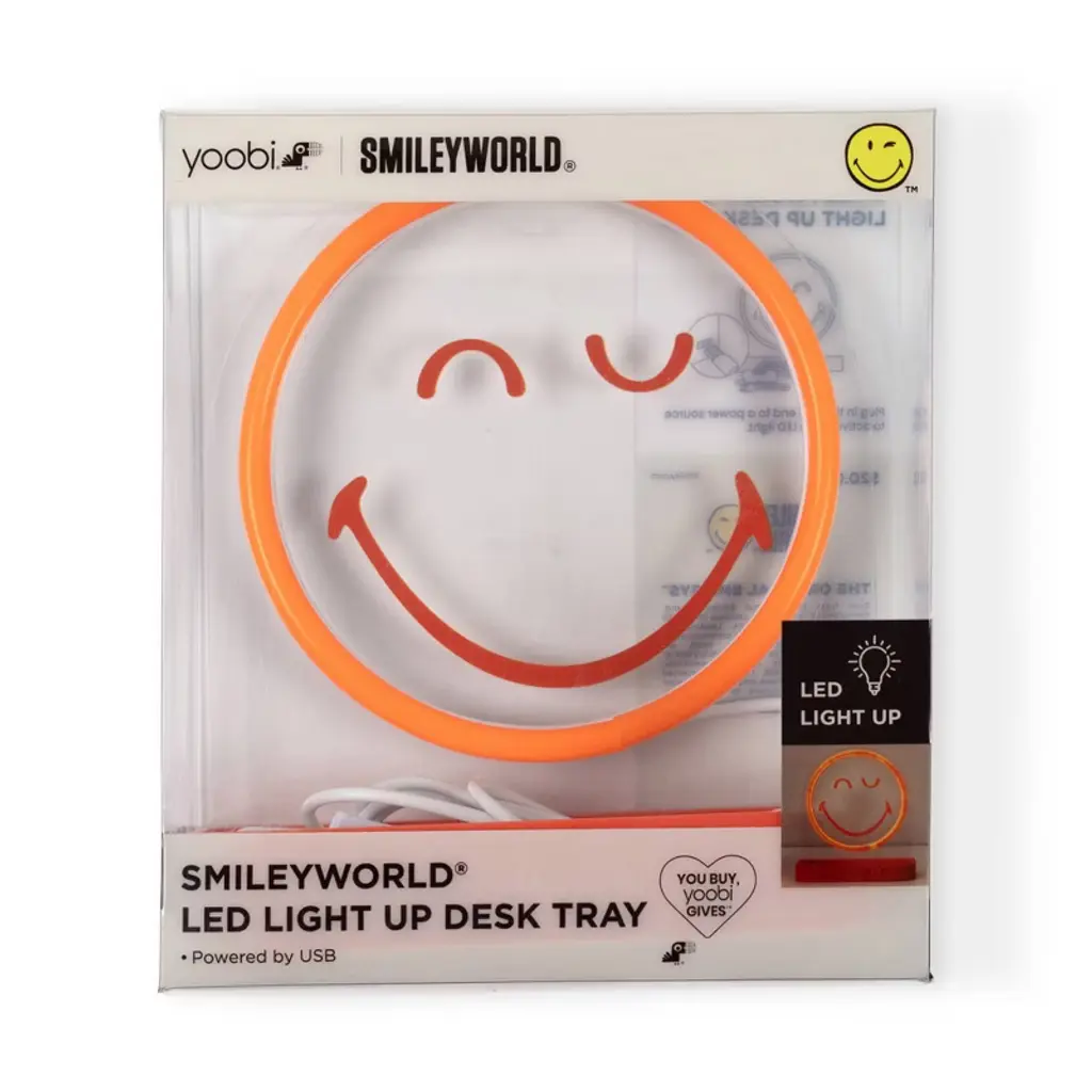 Add a little brightness and personality to your desk with the Yoobi | SmileyWorld®Desk Tray LED in Orange. This LED neon light features a cheerful SmileyWorld® design that gives off a warm pink glow, perfect for energizing your space with a playful vibe.The tray base not only holds the glowing light but also serves as a catch-all for small essentials like trinkets, paperclips, jewelry, or desk accessories. It's USB powered for quick setup and makes the perfect blend of function and fun, whether you're working, studying, or just decorating your favorite corner.YOU BUY, YOOBI GIVES - *For every qualifying Yoobi item purchased, Yoobi Global, LLC will donate a Yoobi item to Kids in Need