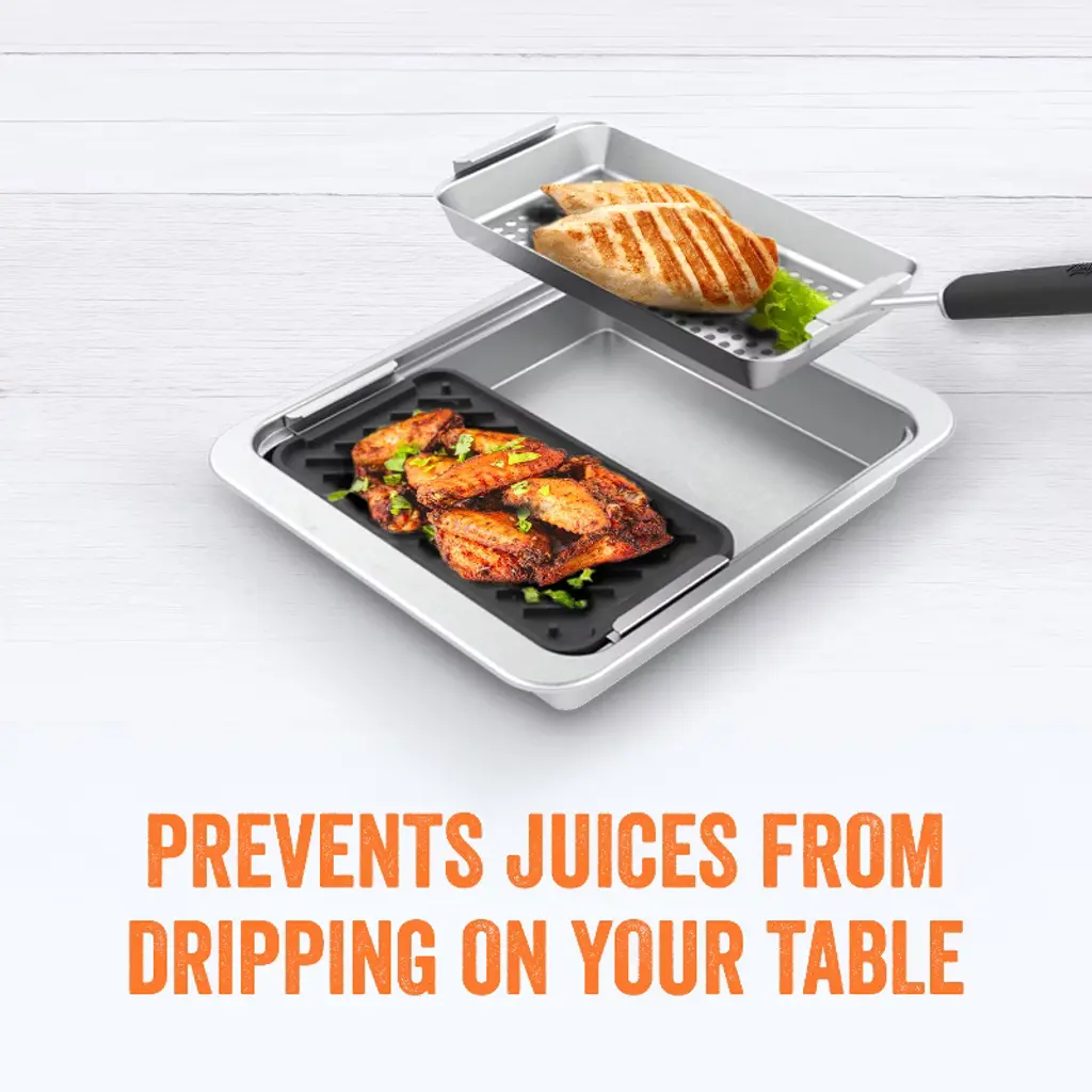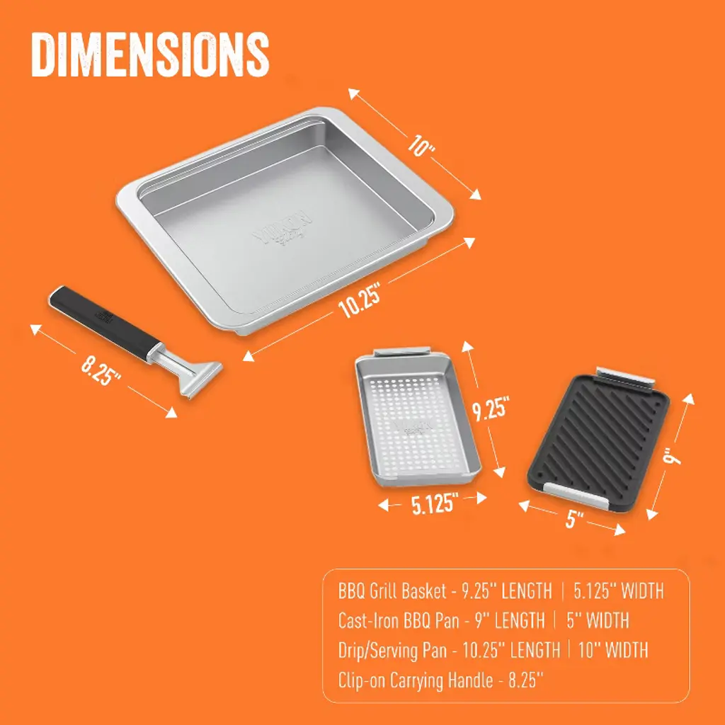 INNOVATIVE DESIGN - Your new BBQ grill accessories for outdoor grill set includes a handle that easily clips and unclips to ensure easy and safe serving even for the hottest stainless steel grill basket Holes allow heat and BBQ flavor to pass through Prevent food from falling through the grill grates Prevents juices from dripping on your table No need for grill gloves Sear marks that will leave you salivating.