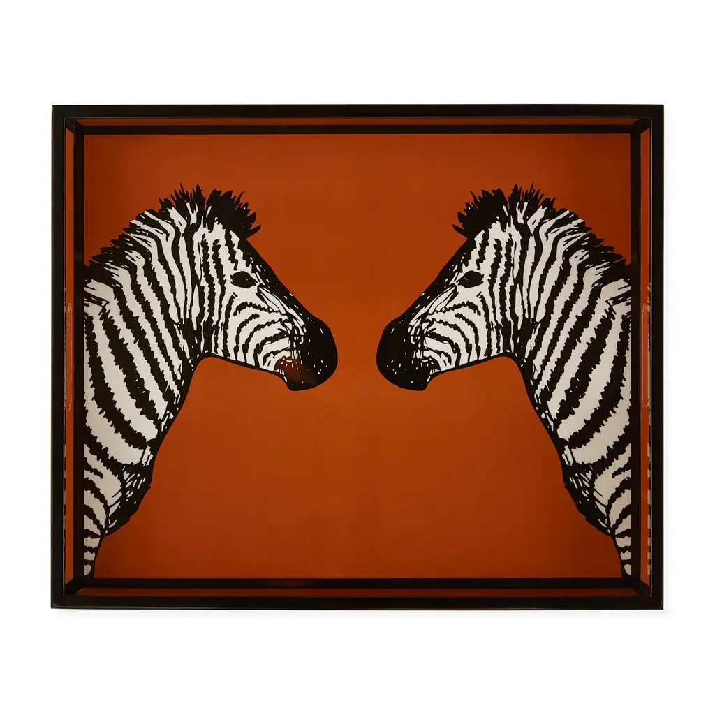 Safari Chic. Time to serve a little WASPy chic with a lot of savage style. Featuring a pair of divinely striped equines on a toasty cognac background, our Zebra Lacquer tray is a fierce addition to any counter, console, or cocktail table. Hand-finished to a high-gloss shine, it’s a couture way to corral your stuff without any fuss.