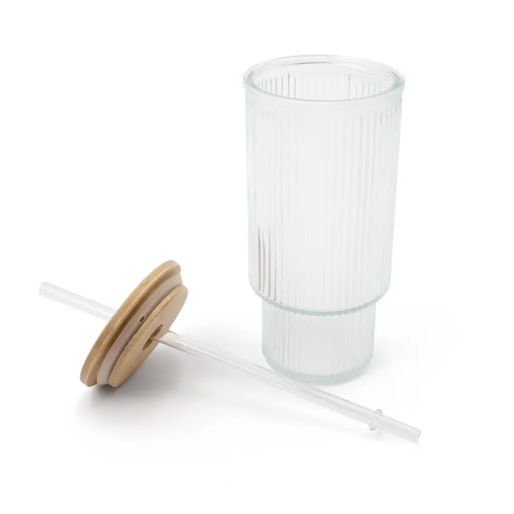 Sip in style with the 15.38 fl oz Ribbed Glass Tumbler from Bullseye's Playground. Crafted from clear glass with a bamboo lid, this tumbler offers a sleek design perfect for any occasion. Its ribbed texture adds a touch of elegance, while the included straw makes it convenient for on-the-go hydration. With a height of 8.5 inches, it's a great addition to your drinkware collection.