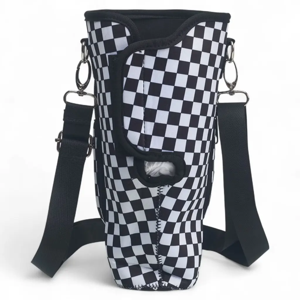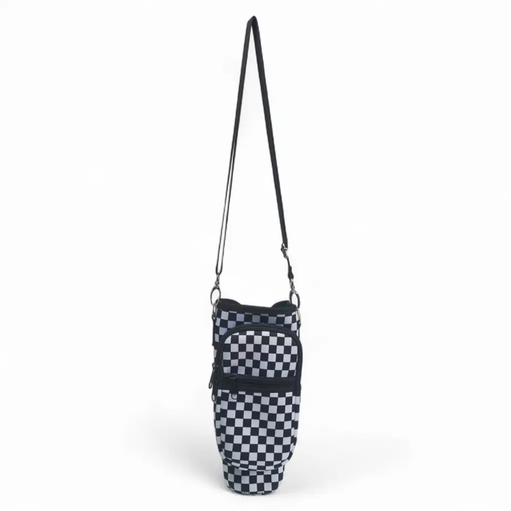 A Little Obsessed Neoprene Tumbler Holder Crossbody Bag With Pockets, Black & White