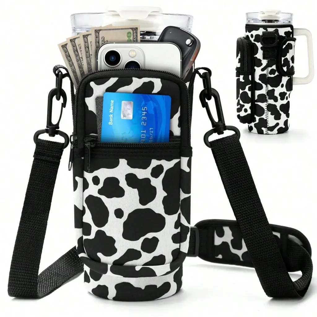 Stay hydrated in style and keep your hands free with the Tumbler Holder Crossbody Bag from a little obsessed. Perfectly designed for your on-the-go lifestyle, this chic carrier is the ultimate accessory for walks, shopping trips, or heading to the gym. The durable, water-resistant neoprene sleeve protects your favorite tumbler from bumps and scratches, while the convenient front pockets provide the perfect spot for your phone, keys, and cards. With the adjustable and detachable strap, you can wear it as a crossbody or shoulder bag for customized comfort. It's the simple, stylish solution to carrying your essentials effortlessly.