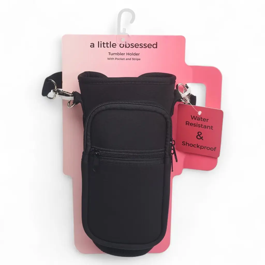 A Little Obsessed Neoprene Tumbler Holder Crossbody Bag With Pockets, Black