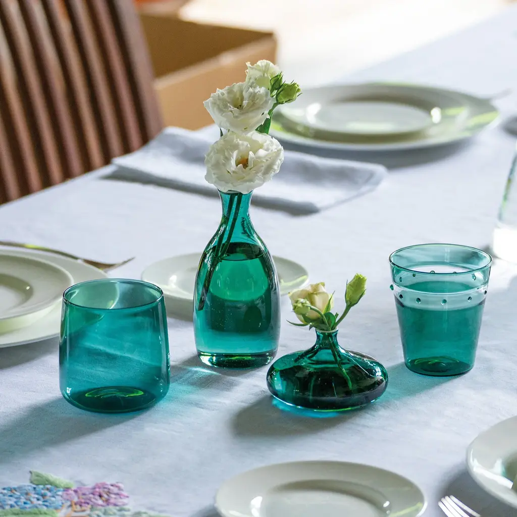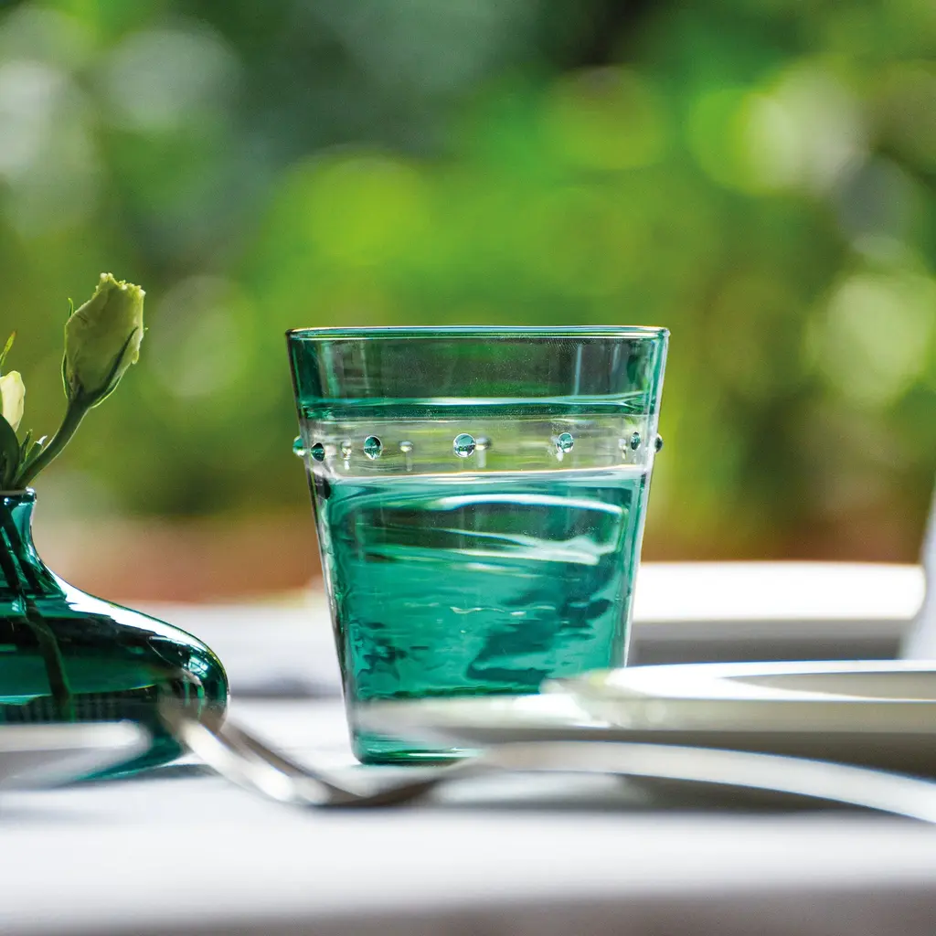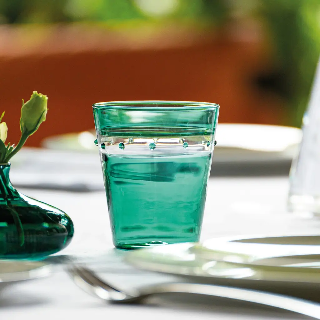 The A Pallini Tumbler Set from Zafferano brings the historic art of Murano glassmaking to the modern table. Expertly mouth-blown in Italy, each tumbler is a unique work of art, utilizing the ancient 'incalmo' technique to seamlessly fuse different colors of glass. This sophisticated, stackable set is a perfect blend of everyday functionality and prestigious craftsmanship, enriching any occasion with its timeless beauty and artisanal heritage. Highlights