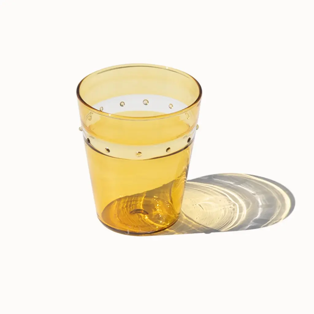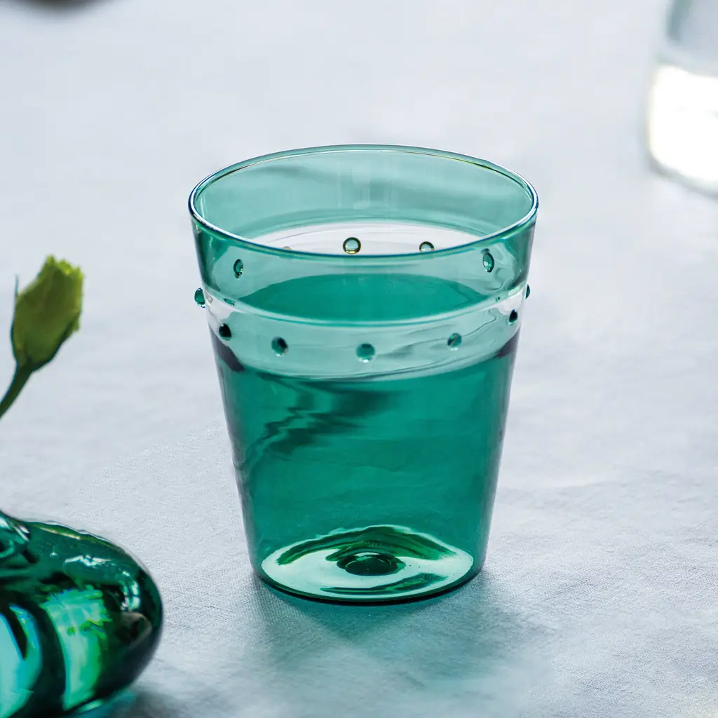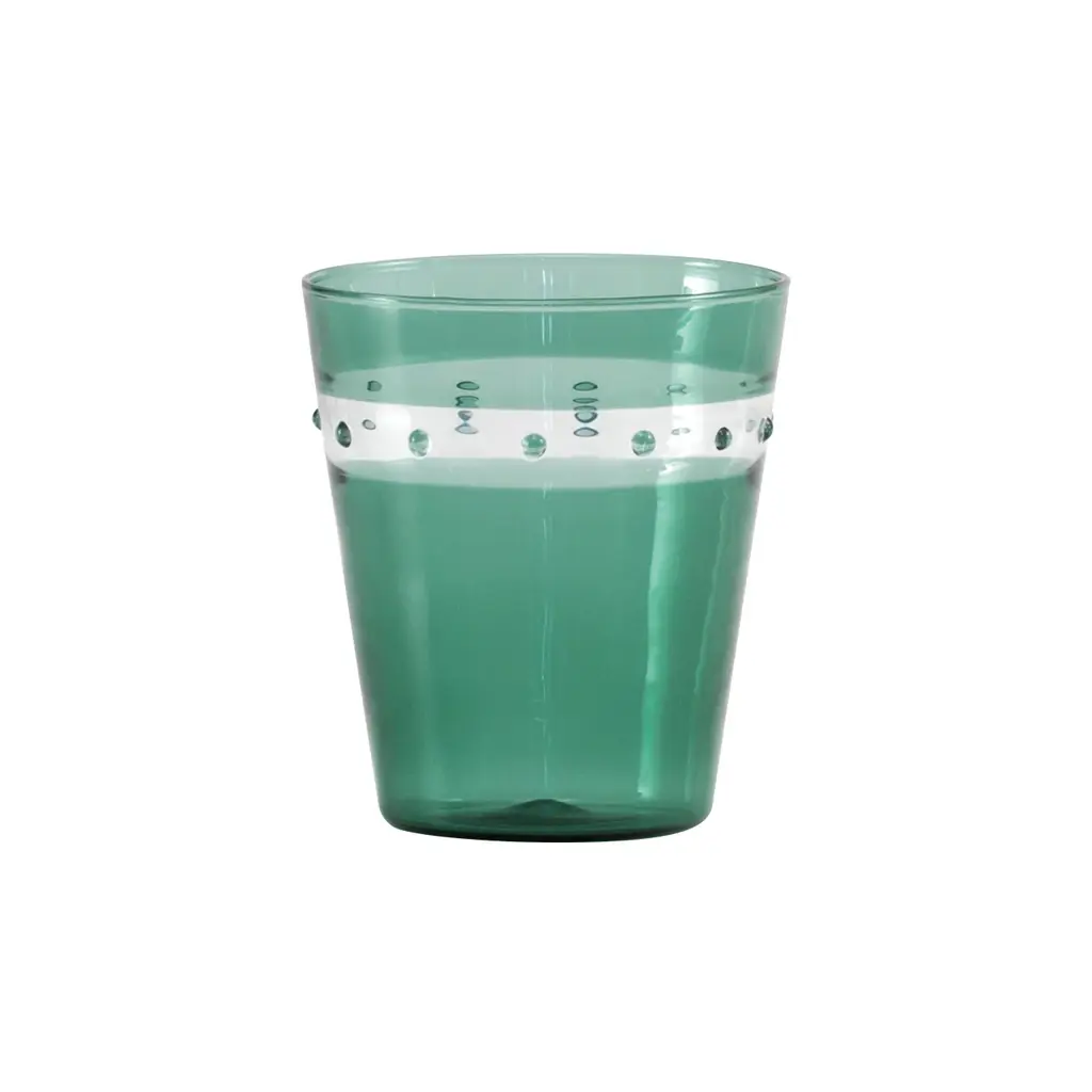 The A Pallini Tumbler Set from Zafferano brings the historic art of Murano glassmaking to the modern table. Expertly mouth-blown in Italy, each tumbler is a unique work of art, utilizing the ancient 'incalmo' technique to seamlessly fuse different colors of glass. This sophisticated, stackable set is a perfect blend of everyday functionality and prestigious craftsmanship, enriching any occasion with its timeless beauty and artisanal heritage. Highlights