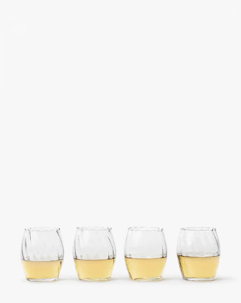 Delicately bold, the Adderley Tumblers are crafted with mouth blown glass. The casual silhouette features a scalloped rim, a twisted glass optic, and a smooth touch with ribbed detail that is purely visual. This unique glass blends seamlessly with your table settings for both versatility and charm.