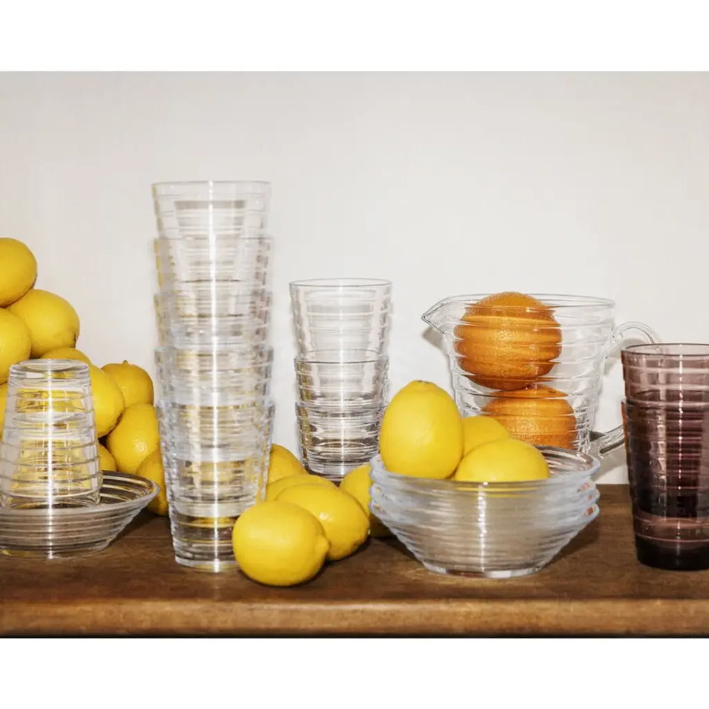 Iittala’s Aino Aalto tumblers have a simple, attractive design based on multifunctionality and stackability. Originally known as Bölgeblick, the pressed glassware collection was inspired by ripples in the water. The Aino Aalto collection came second in a design competition arranged by the Karhula-Iittala glass factory in 1932, and it has remained in Iittala’s production ever since. In the 1930s the collection challenged old habits with its radically new and functional form, and it has since proven to be a true classic of modern Nordic design. The Aino Aalto glassware goes beautifully together with all the tableware collections by Iittala. The large tumblers come in a set of two.