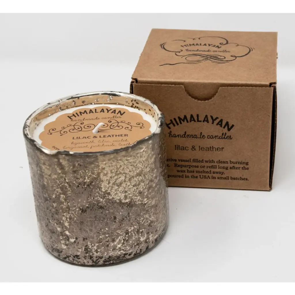 An artisan blown glass in mottled matte gold gently filters flickering candlelight. US grown, soy wax is offered in signature fragrances. Display on a coffee or entryway table and after the candle burns up use as decor!