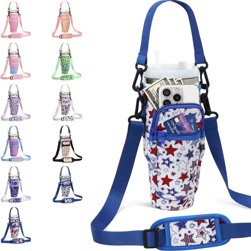 Babyyer Water Bottle Carrier Bag With Phone Pocket, Adjustable Shoulder And Handheld Strap For 40 Oz Tumbler (Blue Star)