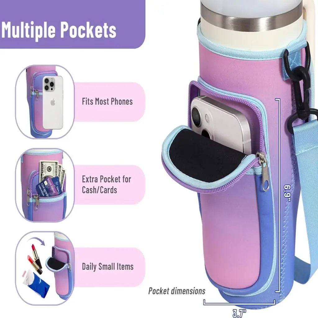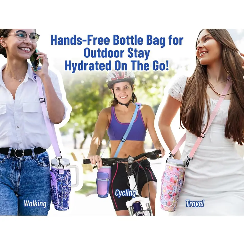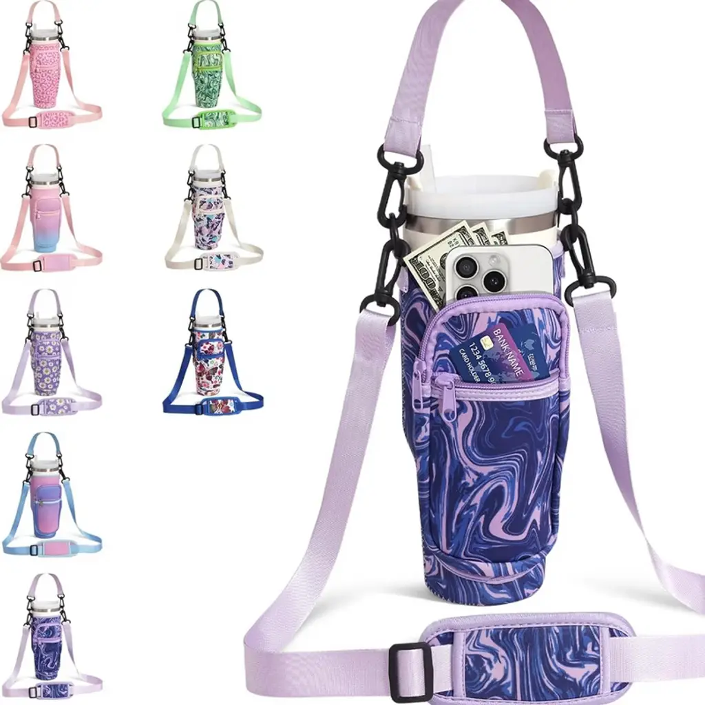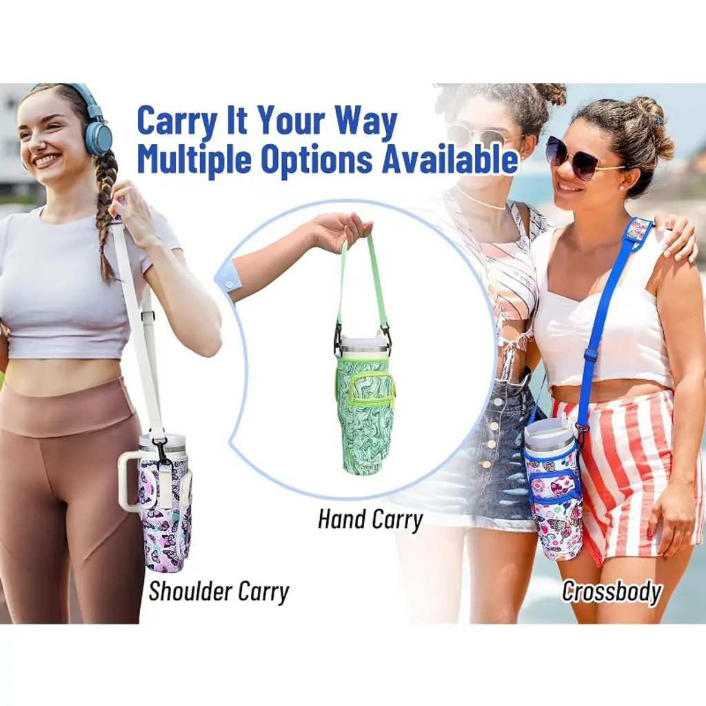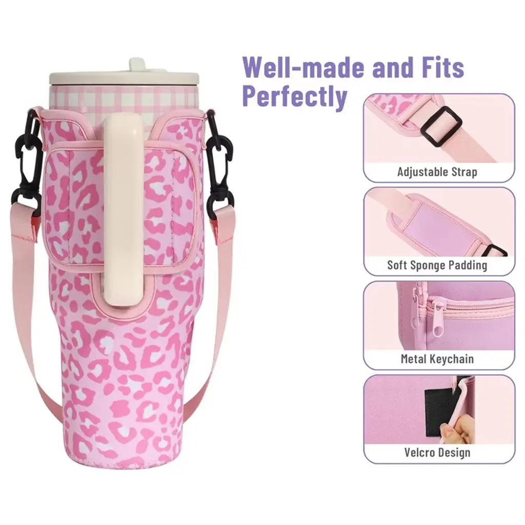 This Water Bottle Carrier Bag is a practical, on-the-go essential tailored for 40 oz tumblers, blending convenient storage with versatile carrying options to simplify daily hydration. Designed to fit most 40 oz tumblers, it features a snug, form-fitting structure that keeps the bottle secure—no slipping, sliding, or excess fabric—while still being easy to slide the tumbler in and out.