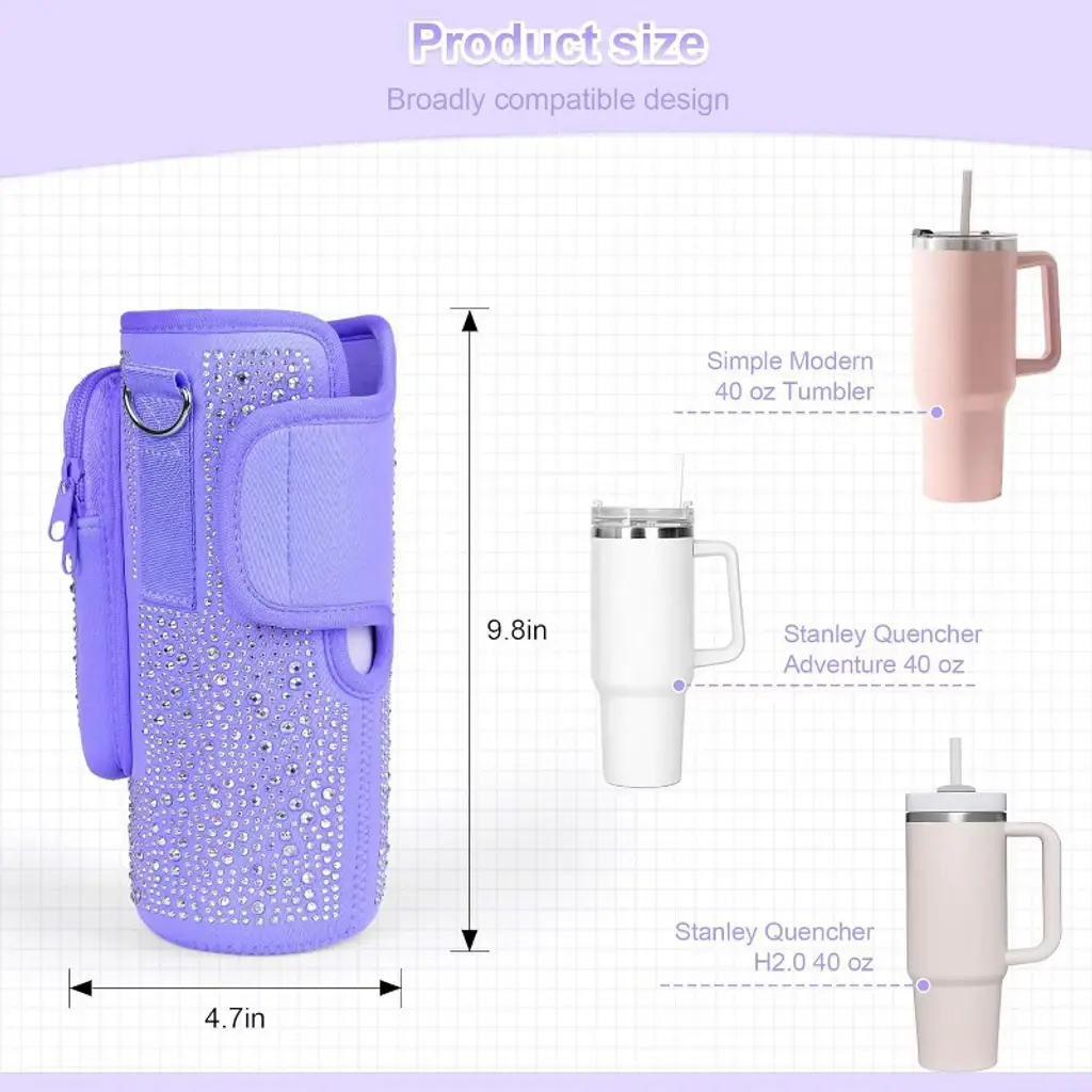 Babyyer Water Bottle Carrier Bag With Phone Pocket For 40/30 Oz Tumbler With Card Holder (Purple)