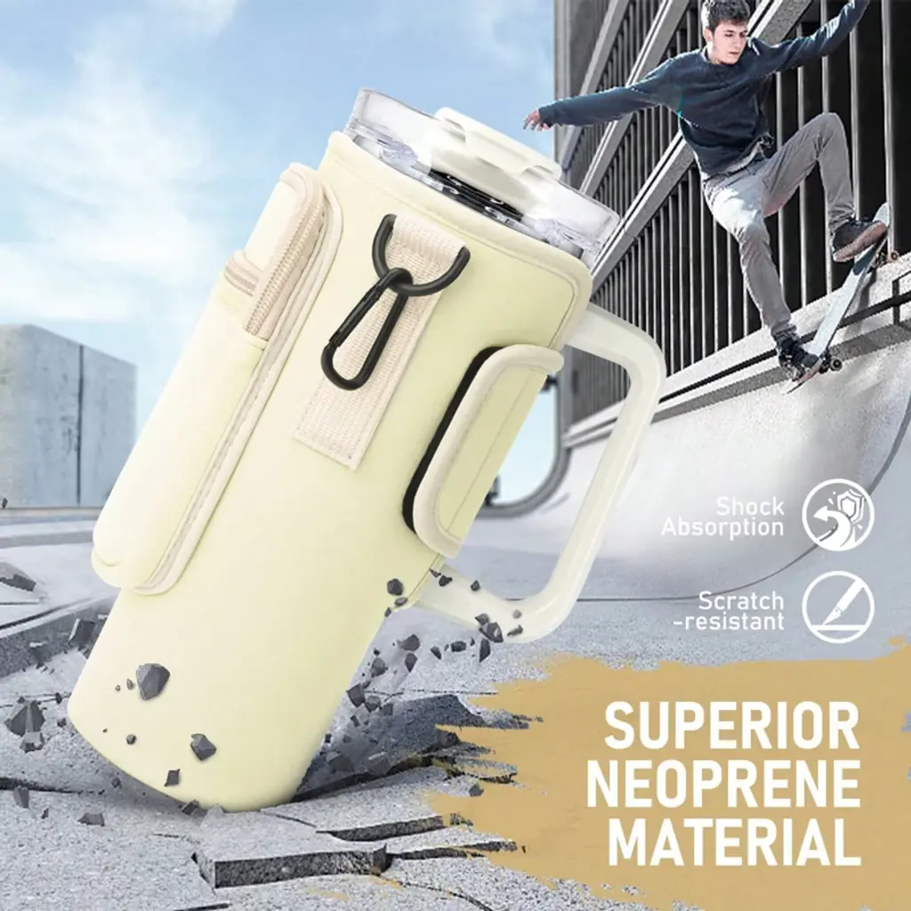Babyyer Water Bottle Carrier Bag With Phone Pocket For Stanley 40oz Tumbler Neoprene Water Bottle Holder Pouch (Beige)