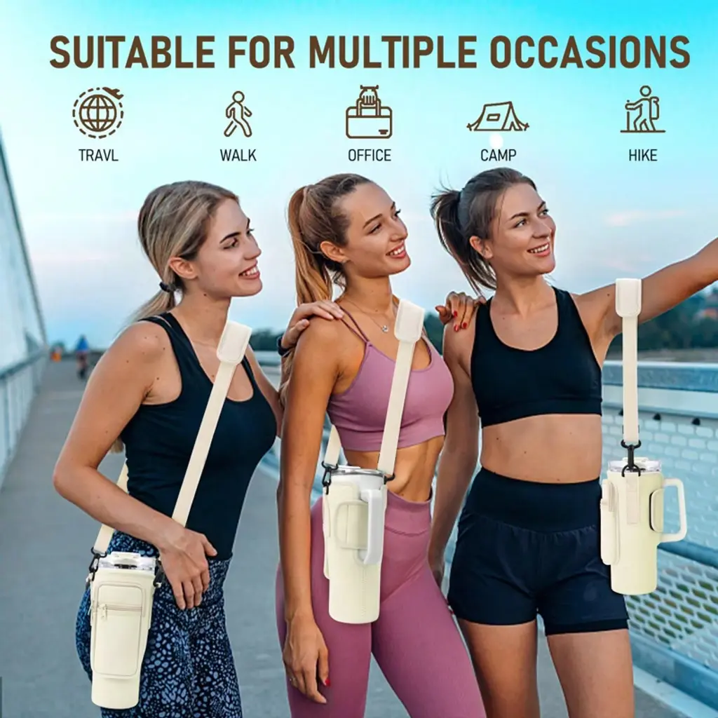 【Wide Application and Perfect Gift】This beautiful water bottle cover for stanley 40 oz tumbler is perfect for walking, biking, camping, hiking, school, commuting, or even if you're at the beach, gym, or sporting events. The tumbler pouch's versatile design makes it suitable for various sports and outdoor activities. And the water bottle holder with strap is a perfect gift for stanley fans