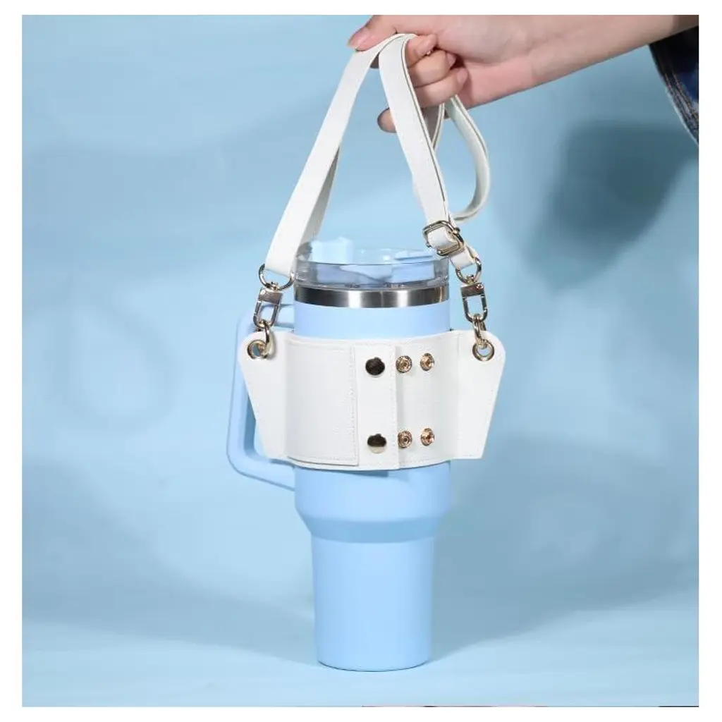 Babyyer Water Bottle Holder With Strap For 40oz,water Bottle Pouch Series Tumbler,pu Water Bottle Bag (White)