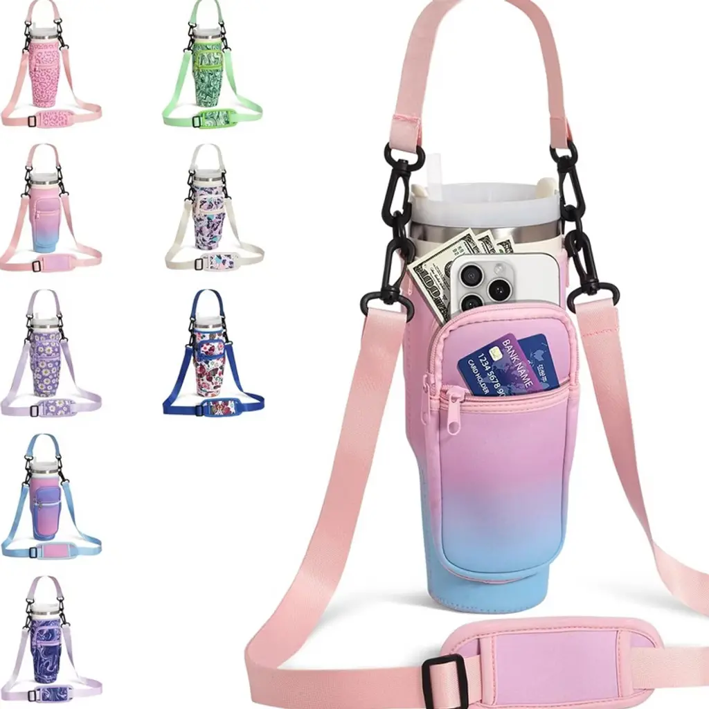 Babyyer Water Bottle Holder With Strap,water Bottle Carrier Bag For Tumbler With Handle, Insulated Water Bottle Sling Bag With Phone Pouch
