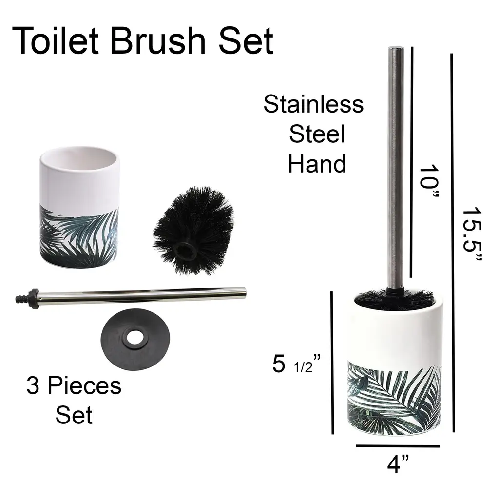 Choose standalone product or the full setGrace your bathroom vanities with elegance and modern style using this bath accessory Set 4-pieces Tropical. If your bathroom counters look a little cluttered, you may need to upgrade your space with these bathroom accessories. Stop throwing your bathroom essentials all over the counter and use one of these convenient sets instead. Actually Evideco's bath sets are designed to be enjoyed individually or as a whole. With offerings such as soap dispenser, tumbler, toothbrush holder, soap dish cup, vanity tray, waste basket or toilet brush holder. Indeed, adding style to your bathroom, kitchen, laundry or for your vanity décor is easier than ever. A collection of useful holders, trays and organizers makes getting through morning and evening routines joyful and easy. Moreover, our bathroom accessories sets offer style and décor, no matter what design you love. Plus, they're durable and made with easy-to-clean materials. We offer plastic, ceramic, bamboo, acacia and stainless steel materials that won't rust after use .In short, our bath accessory set will complete your new bathroom look in seconds. But also, it will allow you to neatly arrange your bath essentials with style. Enjoy this bath accessory Set 4-pieces Tropical to freshen up your countertops and bring style to your home in seconds."