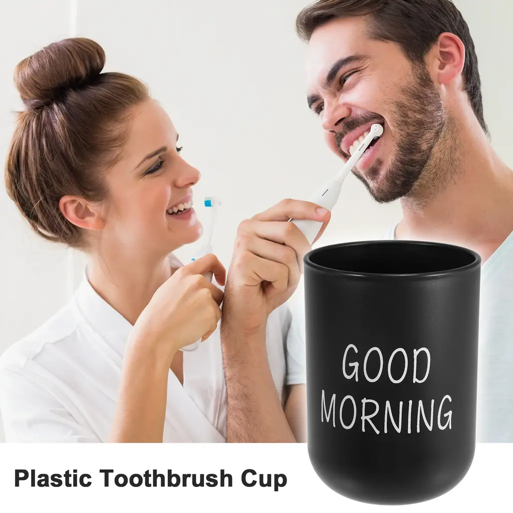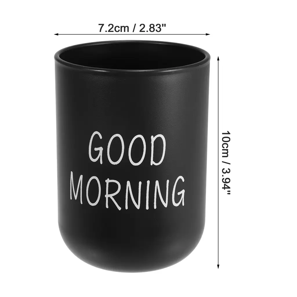Features:Large capacity cup, can meet the needs of daily life gargling, without frequent filling of waterUsed for many occasions, coffee, tea, water, milk, juice, soda, toothbrush holder, children's toothbrush cup, picnic, etc.Easy to clean, cups can be stacked to save spaceGlasses have the disadvantage of being fragile and bulky, the cups are not only drop-proof but also light in weight.Specifictions:Product Name: Plastic Toothbrush CupMaterial: PlasticQuantity: 1 PcColour: BlackSize: 10x7.2cm / 3.94''x2.83''(H*D)Please Note:Please allow 5-10mm differences due to manual measurement. Thank you for being so understanding.Package List:1 Pc Plastic Toothbrush Cup