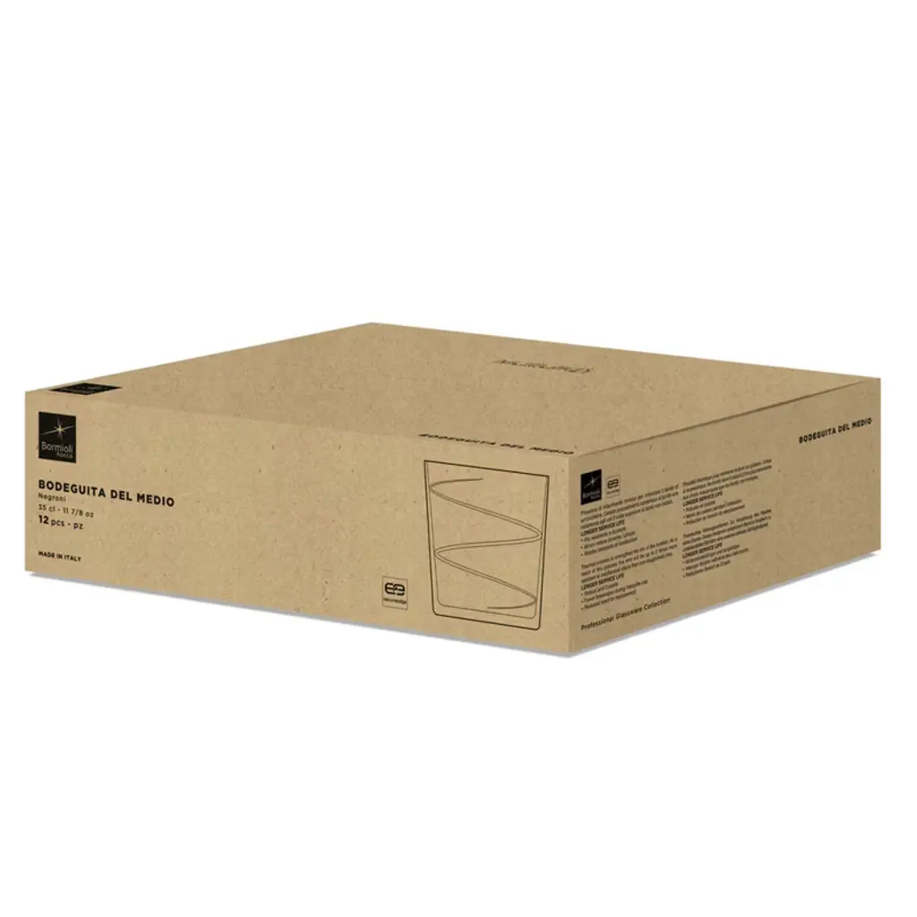 Serve signature cocktails with confidence using the Bormioli Rocco Bodega Swirl Negroni Glasses, a set of 12 expertly crafted 12 oz. tumblers. Featuring a distinctive spiral design, these glasses deliver a modern look with a tactile feel that enhances every pour. Whether presenting a classic Negroni, whiskey, or another lowball cocktail, these tumblers offer the perfect combination of form and function. Each glass is engineered with Secure Edge technology, a specialized thermal treatment that reinforces the rim, making it up to twice as resistant to impact compared to ordinary glassware. This innovation ensures fewer breakages and increased durability, ideal for both professional and home bar use. The 12 oz. capacity is perfect for cocktails served over ice or with bold garnishes, delivering a balanced and eye-catching presentation every time. Crafted in Italy, this glassware reflects Bormioli Rocco's commitment to style, strength, and functionality. The dishwasher safe construction ensures simple maintenance while preserving the brilliance of the glass. With a blend of elegance and reliability, the Bodega Swirl Negroni Glasses are a standout choice for cocktail enthusiasts and bartenders alike.