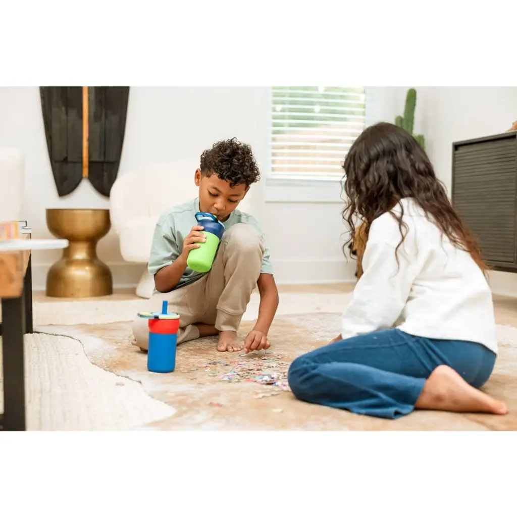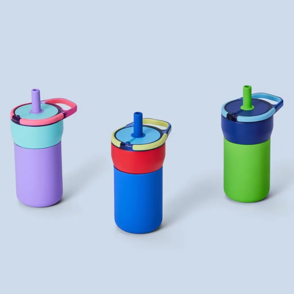 A 100% leakproof straw tumbler designed for kids. With leakproof technology to prevent spills, a protective silicone sleeve to prevent dents + dings, triple-insulation for all-day cold drinks, and a cold-key straw that keeps plastic from sitting in water, the Leap is built to handle everyday adventures. Perfect for school, playdates, and activities on the go, it comes in a variety of fun colors to match your child's unique style.Note: Leap must be in the locked position to prevent spills. There is an instruction manual that comes with it and explains how it works. Recommended for ages 4+.