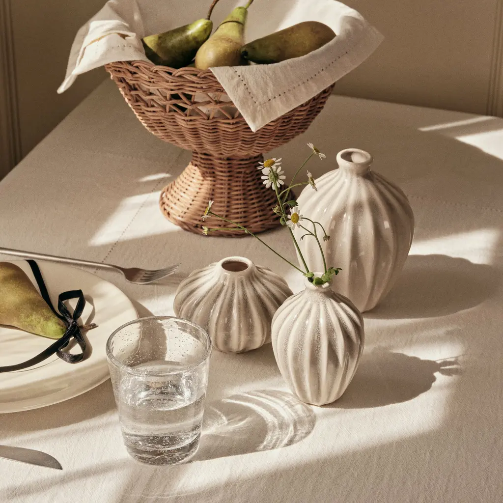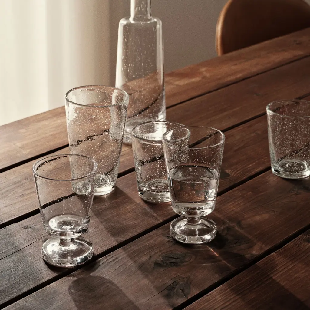 Straightforward but far from plain, the Bubble Classic Tumbler is the most compact in the Broste Copenhagen glassware series. Each glass is mouth-blown from clear glass and embedded with soft, irregular bubbles—making every piece subtly distinct. With its straight sides and 25 cl capacity, it’s well-sized for small pours of juice, spirits, or water. Despite the name, there’s nothing generic about this tumbler. It’s the kind of piece that feels right in any setting—breakfast table to bar cart—and works just as well in a stack of four as it does standing alone.