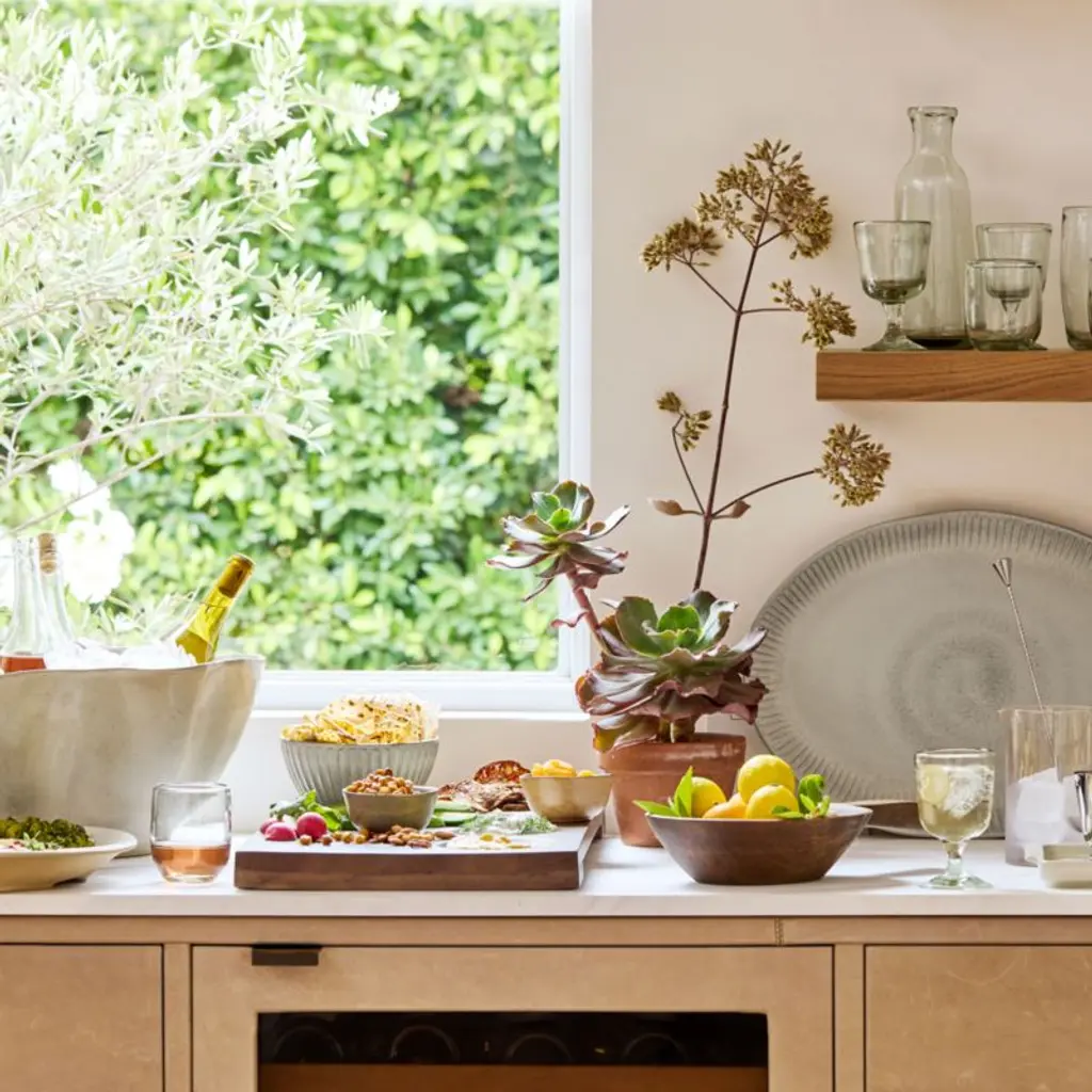 Every drink looks that much more inviting served in Careyes. Made in Mexico out of recycled glass, each tumbler is hand blown with a rounded body and sturdy sham that feels great in hand. Filled with cocktails, lemonade or soda, the highball-style glass adds character and artisan quality to sit-down dinners or casual get-togethers.Laid-back vibes, effortless entertaining. We tapped chef and cookbook author Gaby Dalkin to create this exclusive collection of beautiful serving and kitchen essentials.
