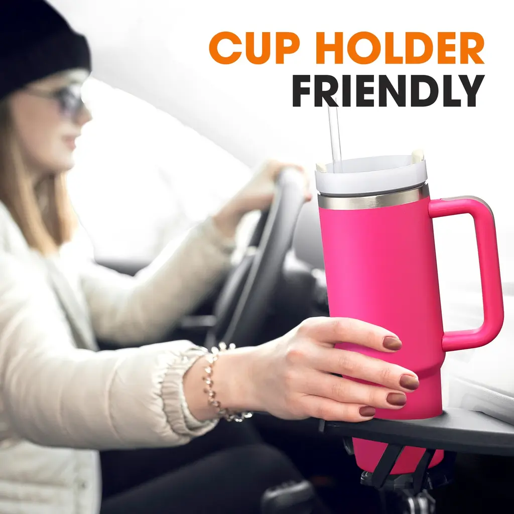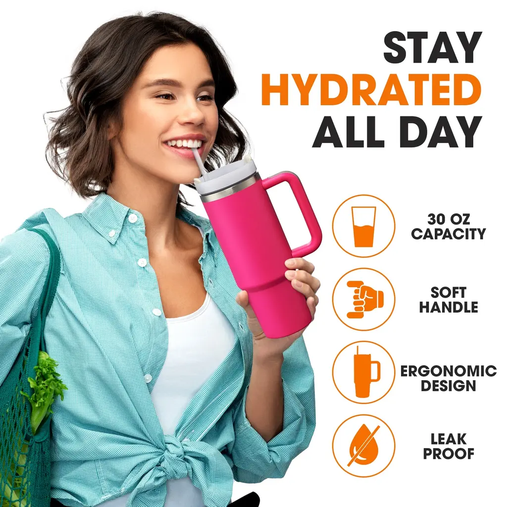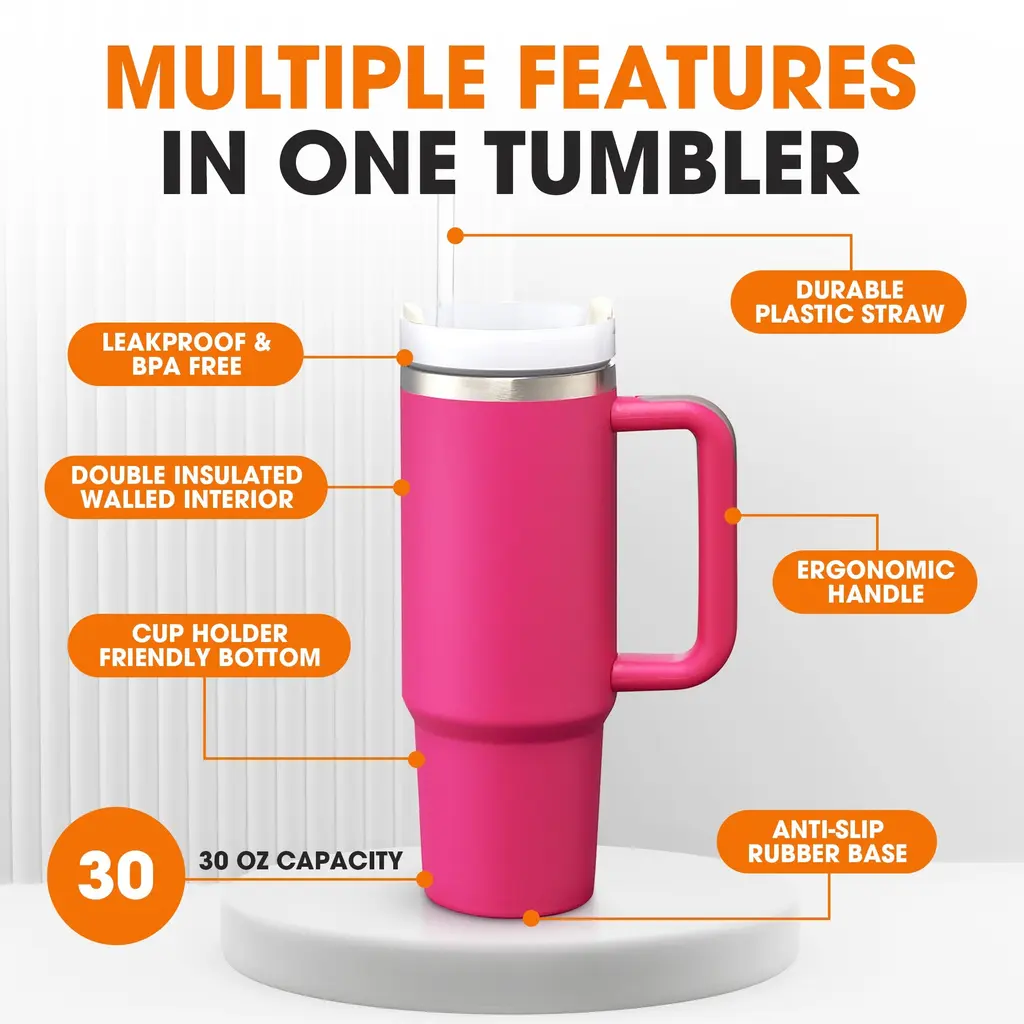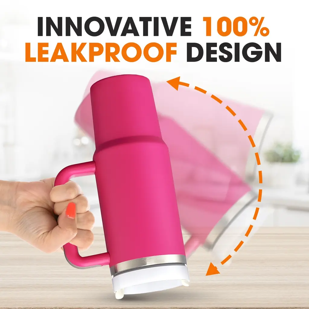 Stay refreshed and hydrated with the Cheer Collection Leakproof Insulated Tumbler, perfect for active lifestyles and everyday use. This tumbler features double-walled insulation to keep beverages ice cold for up to 30 hours and hot for up to 8 hours. Its innovative leakproof design, complete with a silicone ring, ensures no spills. Constructed from durable, BPA-free materials, it boasts a soft ergonomic handle for comfortable carrying and an anti-slip rubber base. The narrow bottom fits most car cup holders, making it ideal for travel, work, or outdoor adventures. Available in multiple colors and sizes, this tumbler is a stylish and practical addition to your daily routine.SUPERIOR TEMPERATURE CONTROL: Double-walled insulation keeps drinks cold for 30 hours and hot for 8. Enjoy your beverages at the perfect temperature all dayLEAKPROOF AND SPILL-FREE: 100% leakproof design with a built-in silicone ring. Take it anywhere without worrying about spillsCOMFORTABLE CARRYING: Soft ergonomic handle provides a comfortable grip. Perfect for travel and daily useSAFE AND DURABLE: Made from BPA-free materials for health safety. Designed to withstand daily useCONVENIENT AND VERSATILE: Includes a reusable straw and screw-on lid. Ideal for on-the-go hydrationAmazing Features: