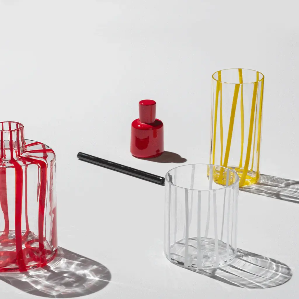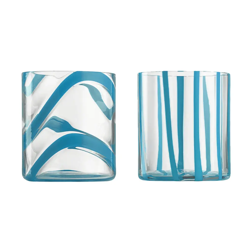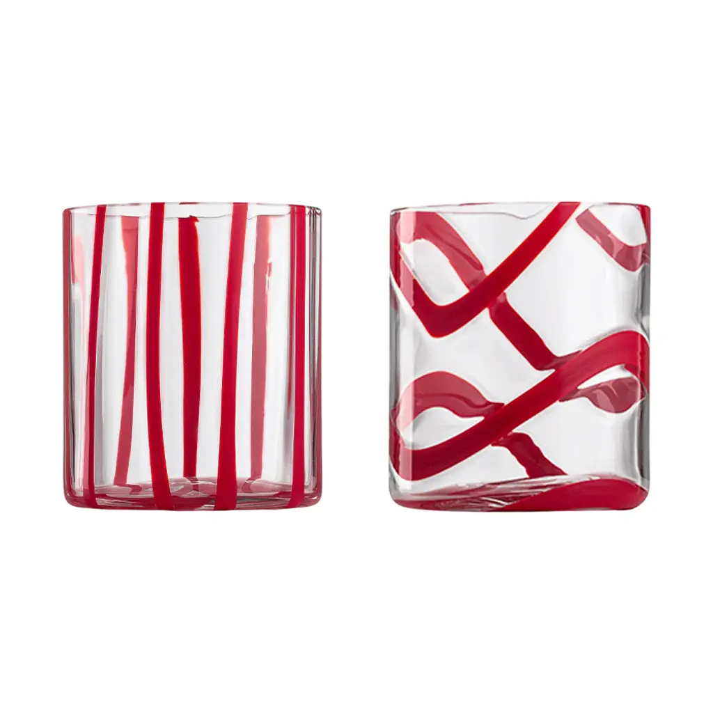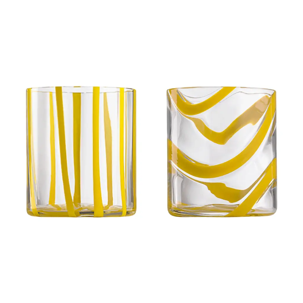Elevate your drinking experience with the Cyrcus Tumbler (Set of 2) from Nason Moretti. The sleek cylindrical shape and impeccable clarity evoke a sense of contemporary charm, while the vibrant pattern adds a playful touch. Inspired by the lively atmosphere of circuses, this tumbler is also available in a striking striped design. Enjoy the perfect balance of liveliness and sophistication. Highlights
