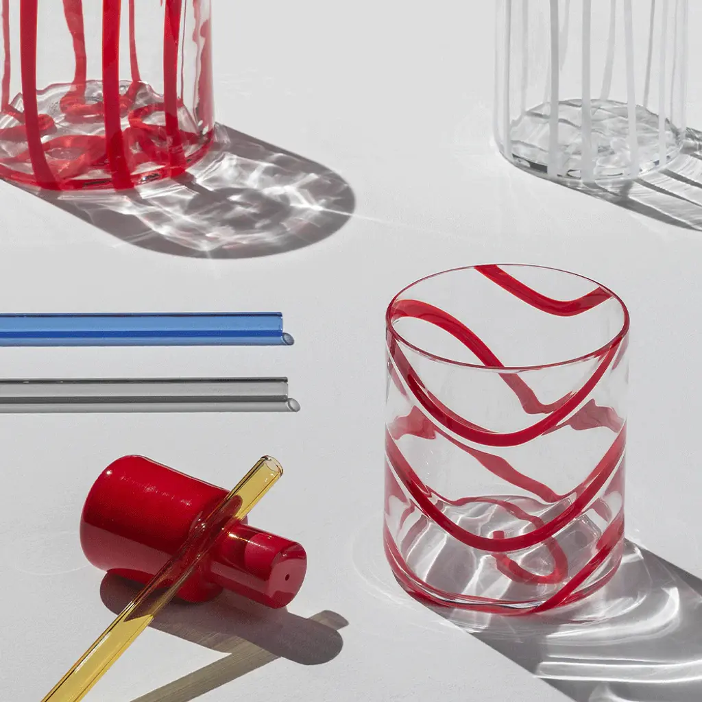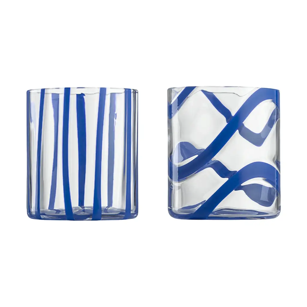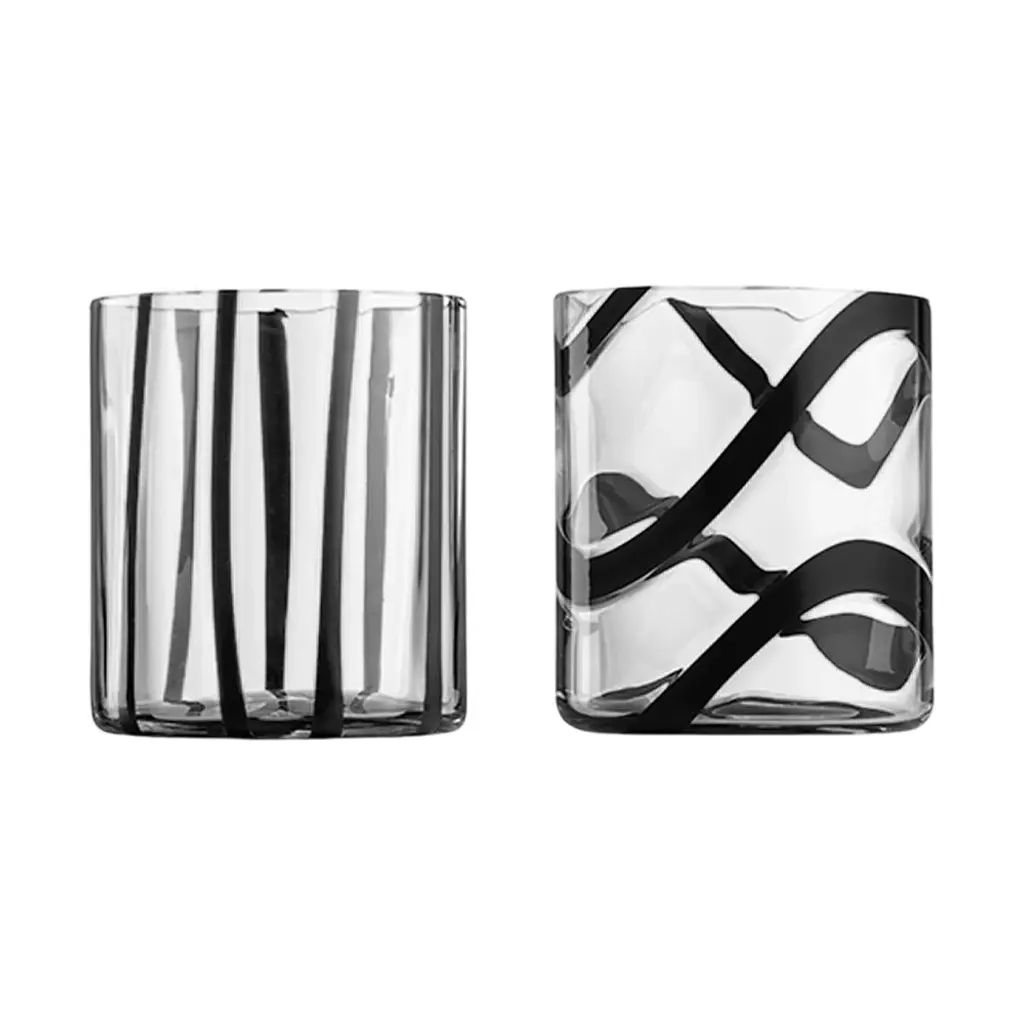 Elevate your drinking experience with the Cyrcus Tumbler (Set of 2) from Nason Moretti. The sleek cylindrical shape and impeccable clarity evoke a sense of contemporary charm, while the vibrant pattern adds a playful touch. Inspired by the lively atmosphere of circuses, this tumbler is also available in a striking striped design. Enjoy the perfect balance of liveliness and sophistication. Highlights