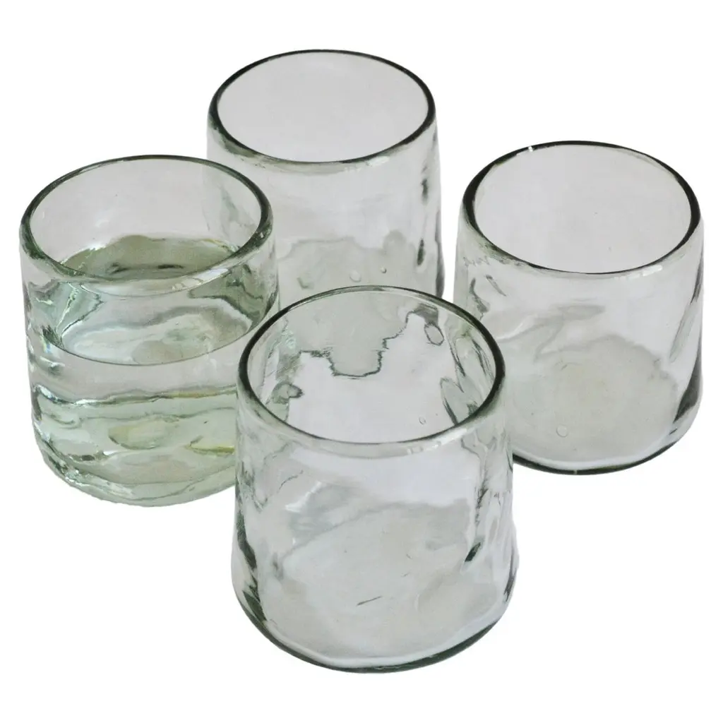 This glassware set is perfect for your next fiesta! Use the glasses to serve your favorite delicious margaritas or juices. The set adds a great sense of elegance to the dining room that will be enjoyed by everyone. Each blown glass is made by the hands of skilled artisans, may vary slightly in size and show tiny bubbles within the glass that develop from the blowing process. Lead-free, made from sustainable recycled glass. Hand-washing recommended, but dishwasher safe if needed. Exceptional artisan quality, thick and sturdy glass. Proudly hand made in Mexico.