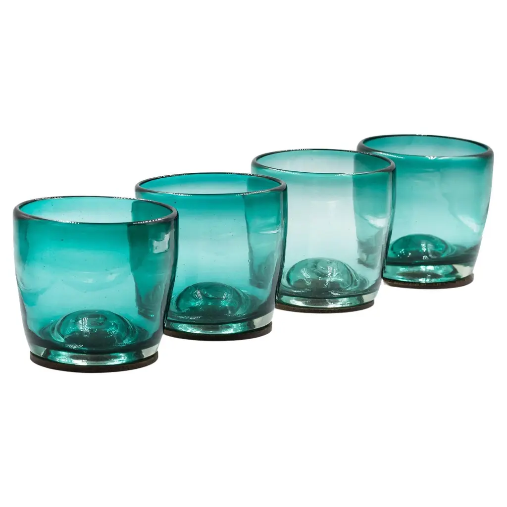 This traditional set of 6 aqua/teal rim tumbler glasses is perfect for your next fiesta! Use them to serve water, juice, soda or alcohol. The set adds a great sense of elegance to the dining room that will be enjoyed by everyone. Each blown glass may vary slightly in size and show tiny bubbles within the glass that develop from the blowing process. Lead-free, made from sustainable recycled glass. Hand-washing recommended, but dishwasher safe on the top rack. Exceptional artisan quality, thick and sturdy glass. Proudly hand made in Mexico.