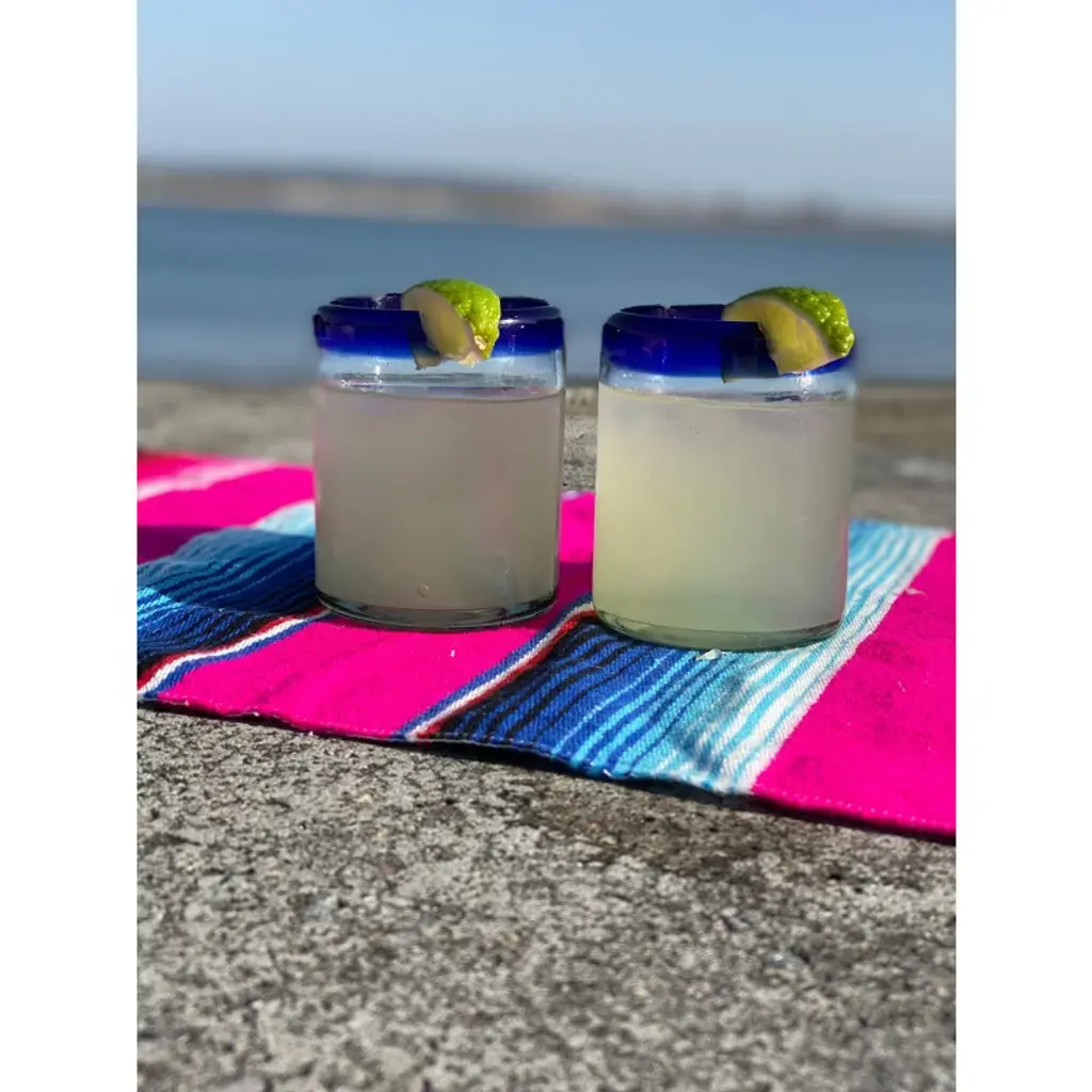 Dos Sueños Mexican Hand Blown Tumblers - Blue Rim - 10oz - Set Of 2
