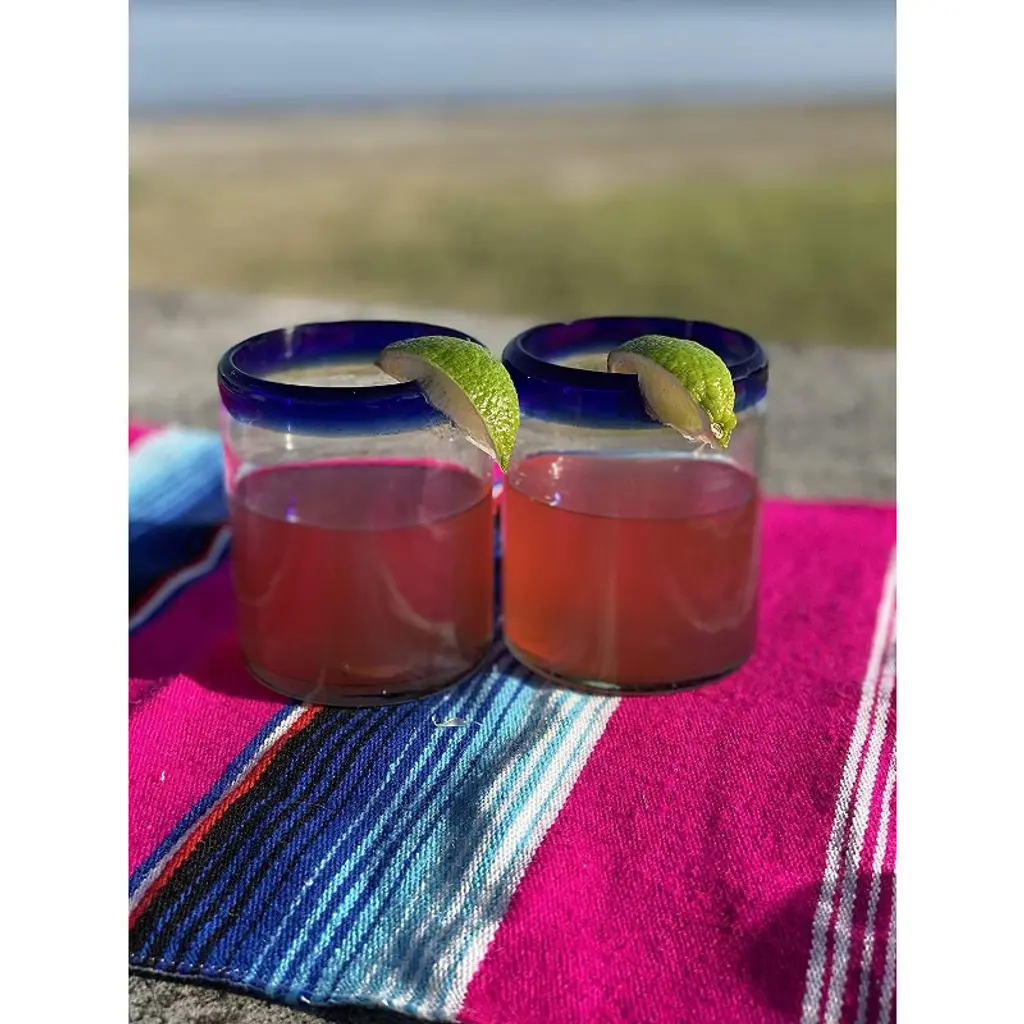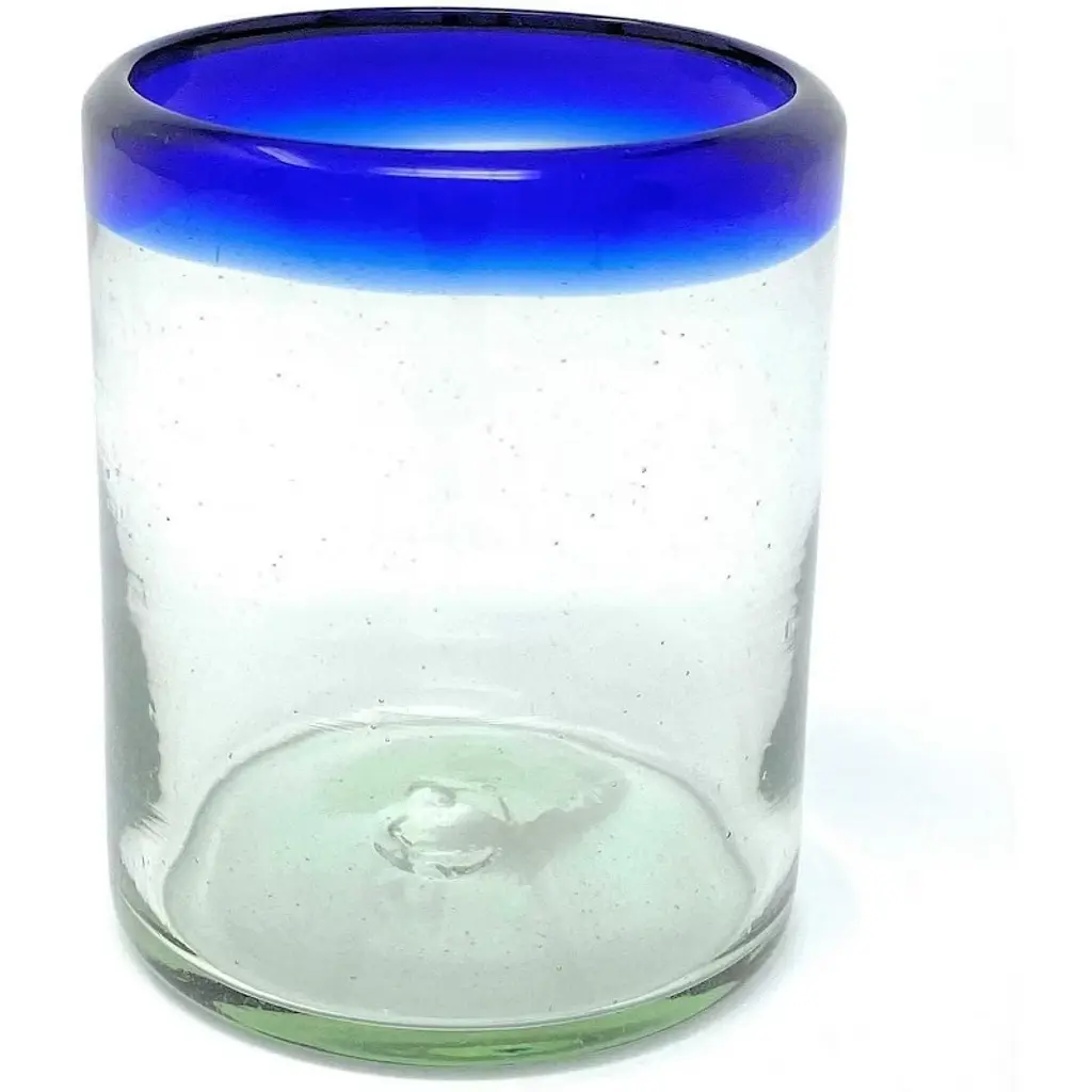 This traditional set of 6 blue rim tumbler glasses is perfect for your next fiesta! Use them to serve water, juice, soda or alcohol. The set adds a great sense of elegance to the dining room that will be enjoyed by everyone. Each blown glass may vary slightly in size and show tiny bubbles within the glass that develop from the blowing process. Lead-free, made from sustainable recycled glass. Hand-washing recommended, but dishwasher safe on the top rack. Exceptional artisan quality, thick and sturdy glass. Proudly hand made in Mexico.